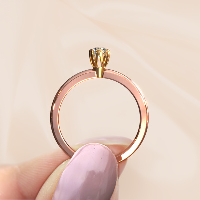 Der oben gezeigte Verlobungsring wird Julia genannt. Wir nennen das einen Solitär-Ring, denn er hat einen einzelnen Edelstein. Es ist ein 14 Karat Roségold Verlobungsring, mit 0.10 crt rund Diamant. Dieser trendige Roségold Solitär-Ring mit exquisitem, rund Diamant ist ein schöner Verlobungsring. Die offenen Krappen ermöglichen, dass Licht aus mehr Winkeln auf den Edelstein trifft. Der Ring besticht auch durch die hohe Positionierung des Edelsteins. Denn Diamant symbolisieren wahre Liebe und Reinheit und machen sie damit zum perfekten Geschenk für die Liebe Ihres Lebens. Das Symbol der ewigen Liebe ist das Herzstück dieses Solitär-Rings. Wie ein Diamant haben auch alle anderen Arten von Edelmetallen ihre eigenen, zugeschriebenen symbolischen Bedeutungen. Diese Solitär Verlobungsring können Sie selbst zusammenstellen in verschiedenen Edelmetall Kombinationen. Dieser hat die Kombination 14 Karat Roségold mit Gold. Jedes Schmuckstück ist um Ihrem Finger Glanz zu verleihen. Jeder Ring wird von unseren Goldschmieden liebevoll von Hand gefertigt.Haben Sie ein bestimmtes Budget? Sie können uns gerne kontaktieren, damit wir Ihre Optionen besprechen können. Wir bieten unsere Verlobungsringe zum garantiert besten Preis, denn wir fertigen sie auf Bestellung. Solche Preise finden Sie nirgendwo anders!Verschiedene Arten von neuen Ringen werden täglich von unserem Team angefertigt. Vielleicht haben Sie irgendwo einen Solitär Verlobungsring gefunden. Einen, den Sie Ihrem Liebsten schenken möchten. Bitte zögern Sie nicht, unseren Schmuckdesignern Ihre Gedanken und Ihr Design zu zeigen. Wir würden gerne Ihr Design in einen trendige Verlobungsring verwandeln. Sie können die Entwicklungen Ihres Ringdesigns verfolgen, da wir sehr detaillierte 3D-Zeichnungen verwenden. Darüber hinaus können Sie einen Dummy des Designs bestellen. Ein Dummy ist ein Kunststoffring, der nach Ihrem Ringdesign gestaltet werden kann. Sie können ihn anprobieren und prüfen, ob der Verlobungsring Ihren Vorstellungen entspricht. Wir senden Ihnen gerne ein unverbindliches Angebot zu einem fairen Preis/Leistungsverhältnis. Das Angebot wird Sie angesichts der Qualität des Rings und der Edelsteine verblüffen.Um es einfacher zu machen, bieten wir eine kostenlose 30-tägige Rücksendung.
