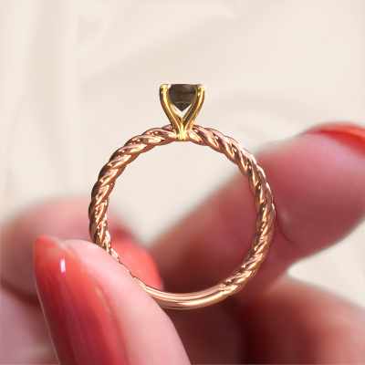 Der oben gezeigte Verlobungsring wird Twanna genannt. Wir nennen das einen Solitär-Ring, denn er hat einen einzelnen Edelstein. Es ist ein 14 Karat Roségold Verlobungsring, mit 5 mm rund Rauchquarz. Dieser Fantasie Roségold Solitär-Ring mit exquisitem, rund Rauchquarz ist ein schöner Verlobungsring. Die offenen Krappen ermöglichen, dass Licht aus mehr Winkeln auf den Edelstein trifft. Der Ring besticht auch durch die hohe Positionierung des Edelsteins. Denn Rauchquarz symbolisieren wahre Liebe und Reinheit und machen sie damit zum perfekten Geschenk für die Liebe Ihres Lebens. Das Symbol der ewigen Liebe ist das Herzstück dieses Solitär-Rings. Wie ein Rauchquarz haben auch alle anderen Arten von Edelmetallen ihre eigenen, zugeschriebenen symbolischen Bedeutungen. Diese Solitär Verlobungsring können Sie selbst zusammenstellen in verschiedenen Edelmetall Kombinationen. Dieser hat die Kombination 14 Karat Roségold mit Gold. Jedes Schmuckstück wird hergestellt von einem Team leidenschaftlicher Goldschmiede und Schmuckdesigner. Das wird Ihr Kronjuwel unbedingt zu einem Blickfang machen.Nach Erhalt Ihrer Bestellung beginnen unsere Goldschmiede mit Leidenschaft den kreativen Prozess und fertigen Ihren Verlobungsring in unserem eigenen Studio. Da wir keine großen Lager haben, werden diese Kosten nicht an Sie weitergegeben. Unsere Preisgestaltung ist der Beweis dafür! Wir bieten Schmuck zum niedrigsten Preis, garantiert.Haben Sie einen bestimmten Ring im Sinn? Eines, dass Sie irgendwo gesehen haben. Bitte zögern Sie nicht, uns zu sagen, was Sie wollen und wir werden Ihr Design in einen Einzigartigen Verlobungsring verwandeln. Sie können die Entwicklungen Ihres Ringdesigns verfolgen, da wir 3D-Zeichnungen verwenden. Das gibt Ihnen eine realistische Vorschau Ihres Designs. Wir senden Ihnen gerne ein unverbindliches Angebot zu einem fairen Preis/Leistungsverhältnis. Es wird Sie erstaunen.Um es einfacher zu machen, bieten wir eine kostenlose 30-tägige Rücksendung.