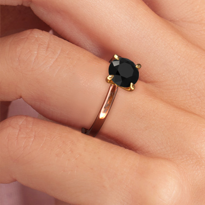 Der oben gezeigte Verlobungsring wird Crystal RND 1 genannt. Wir nennen das einen Solitär-Ring, denn er hat einen einzelnen Edelstein. Es ist ein 14 Karat Roségold Verlobungsring, mit 1.70 crt rund Schwarz Diamant. Dieser klassische Roségold Solitär-Ring mit exquisitem, rund Schwarz Diamant ist ein schöner Verlobungsring. Die offenen Krappen ermöglichen, dass Licht aus mehr Winkeln auf den Edelstein trifft. Der Ring besticht auch durch die hohe Positionierung des Edelsteins. Denn Schwarz Diamant symbolisieren wahre Liebe und Reinheit und machen sie damit zum perfekten Geschenk für die Liebe Ihres Lebens. Das Symbol der ewigen Liebe ist das Herzstück dieses Solitär-Rings. Wie ein Schwarz Diamant haben auch alle anderen Arten von Edelmetallen ihre eigenen, zugeschriebenen symbolischen Bedeutungen. Diese Solitär Verlobungsring können Sie selbst zusammenstellen in verschiedenen Edelmetall Kombinationen. Dieser hat die Kombination 14 Karat Roségold mit Gold. Jedes Schmuckstück wird hergestellt von einem Team leidenschaftlicher Goldschmiede und Schmuckdesigner. Das wird Ihr Kronjuwel unbedingt zu einem Blickfang machen.Nach Erhalt Ihrer Bestellung beginnen unsere Goldschmiede mit Leidenschaft den kreativen Prozess und fertigen Ihren Verlobungsring in unserem eigenen Studio. Da wir keine großen Lager haben, werden diese Kosten nicht an Sie weitergegeben. Unsere Preisgestaltung ist der Beweis dafür! Wir bieten Schmuck zum niedrigsten Preis, garantiert.Haben Sie einen bestimmten Ring im Sinn? Eines, dass Sie irgendwo gesehen haben. Bitte zögern Sie nicht, uns zu sagen, was Sie wollen und wir werden Ihr Design in einen Einzigartigen Verlobungsring verwandeln. Sie können die Entwicklungen Ihres Ringdesigns verfolgen, da wir 3D-Zeichnungen verwenden. Das gibt Ihnen eine realistische Vorschau Ihres Designs. Wir senden Ihnen gerne ein unverbindliches Angebot zu einem fairen Preis/Leistungsverhältnis. Es wird Sie erstaunen.Um es einfacher zu machen, bieten wir eine kostenlose 30-tägige Rücksendung.