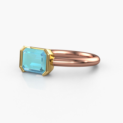 Der oben gezeigte Verlobungsring wird Tayler EME genannt. Wir nennen das einen Solitär-Ring, denn er hat einen einzelnen Edelstein. Es ist ein 14 Karat Roségold Verlobungsring, mit 8x6 mm smaragd schliff Blau Topas. Dieser moderne Roségold Solitär-Ring mit exquisitem, smaragd schliff Blau Topas ist ein schöner Verlobungsring. Die offenen Krappen ermöglichen, dass Licht aus mehr Winkeln auf den Edelstein trifft. Der Ring besticht auch durch die hohe Positionierung des Edelsteins. Denn Blau Topas symbolisieren wahre Liebe und Reinheit und machen sie damit zum perfekten Geschenk für die Liebe Ihres Lebens. Das Symbol der ewigen Liebe ist das Herzstück dieses Solitär-Rings. Wie ein Blau Topas haben auch alle anderen Arten von Edelmetallen ihre eigenen, zugeschriebenen symbolischen Bedeutungen. Diese Solitär Verlobungsring können Sie selbst zusammenstellen in verschiedenen Edelmetall Kombinationen. Dieser hat die Kombination 14 Karat Roségold mit Gold. Jedes Schmuckstück ist um Ihrem Finger Glanz zu verleihen. Jeder Ring wird von unseren Goldschmieden liebevoll von Hand gefertigt.Nach Erhalt Ihrer Bestellung beginnen unsere Goldschmiede mit Leidenschaft den kreativen Prozess und fertigen Ihren Verlobungsring in unserem eigenen Studio. Da wir keine großen Lager haben, werden diese Kosten nicht an Sie weitergegeben. Unsere Preisgestaltung ist der Beweis dafür! Wir bieten Schmuck zum niedrigsten Preis, garantiert.Unsere Designer und Goldschmiede arbeiten jeden Tag zusammen und versuchen, neue Schmuckstücke zu kreieren. Vielleicht haben Sie irgendwo einen schönen, moderne Verlobungsring gefunden, nach dem Ihr einzigartiger Ring gestaltet werden kann. Setzen Sie sich mit uns in Verbindung. Wir machen Ihnen ein Angebot, basierend auf einem fairen Preis/Leistungsverhältnis, das Sie begeistern wird.Um es einfacher zu machen, bieten wir eine kostenlose 30-tägige Rücksendung.