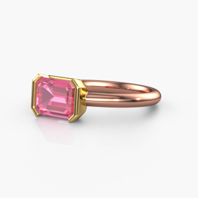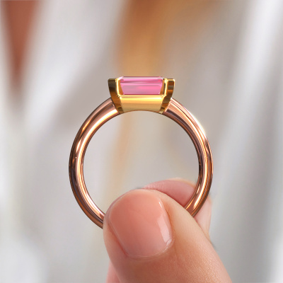 Der oben gezeigte Verlobungsring wird Tayler EME genannt. Wir nennen das einen Solitär-Ring, denn er hat einen einzelnen Edelstein. Es ist ein 14 Karat Roségold Verlobungsring, mit 8x6 mm smaragd schliff Pink Saphir. Dieser moderne Roségold Solitär-Ring mit exquisitem, smaragd schliff Pink Saphir ist ein schöner Verlobungsring. Die offenen Krappen ermöglichen, dass Licht aus mehr Winkeln auf den Edelstein trifft. Der Ring besticht auch durch die hohe Positionierung des Edelsteins. Denn Pink Saphir symbolisieren wahre Liebe und Reinheit und machen sie damit zum perfekten Geschenk für die Liebe Ihres Lebens. Das Symbol der ewigen Liebe ist das Herzstück dieses Solitär-Rings. Wie ein Pink Saphir haben auch alle anderen Arten von Edelmetallen ihre eigenen, zugeschriebenen symbolischen Bedeutungen. Diese Solitär Verlobungsring können Sie selbst zusammenstellen in verschiedenen Edelmetall Kombinationen. Dieser hat die Kombination 14 Karat Roségold mit Gold. Jedes Schmuckstück ist um Ihrem Finger Glanz zu verleihen. Jeder Ring wird von unseren Goldschmieden liebevoll von Hand gefertigt.Nach Erhalt Ihrer Bestellung beginnen unsere Goldschmiede mit Leidenschaft den kreativen Prozess und fertigen Ihren Verlobungsring in unserem eigenen Studio. Da wir keine großen Lager haben, werden diese Kosten nicht an Sie weitergegeben. Unsere Preisgestaltung ist der Beweis dafür! Wir bieten Schmuck zum niedrigsten Preis, garantiert.Unsere Designer und Goldschmiede arbeiten jeden Tag zusammen und versuchen, neue Schmuckstücke zu kreieren. Vielleicht haben Sie irgendwo einen schönen, moderne Verlobungsring gefunden, nach dem Ihr einzigartiger Ring gestaltet werden kann. Setzen Sie sich mit uns in Verbindung. Wir machen Ihnen ein Angebot, basierend auf einem fairen Preis/Leistungsverhältnis, das Sie begeistern wird.Um es einfacher zu machen, bieten wir eine kostenlose 30-tägige Rücksendung.