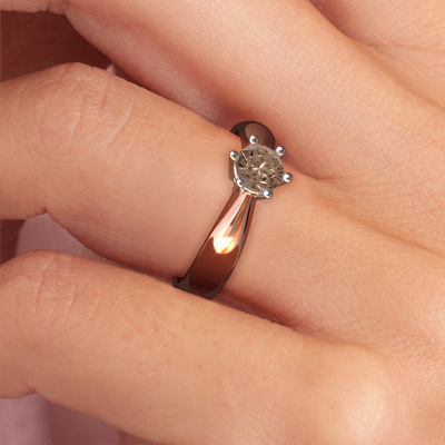 Der oben gezeigte Verlobungsring wird Fay genannt. Wir nennen das einen Solitär-Ring, denn er hat einen einzelnen Edelstein. Es ist ein 14 Karat Roségold Verlobungsring, mit 0.50 crt rund Braun Diamant. Dieser traditionell Roségold Solitär-Ring mit exquisitem, rund Braun Diamant ist ein schöner Verlobungsring. Die offenen Krappen ermöglichen, dass Licht aus mehr Winkeln auf den Edelstein trifft. Der Ring besticht auch durch die hohe Positionierung des Edelsteins. Denn Braun Diamant symbolisieren wahre Liebe und Reinheit und machen sie damit zum perfekten Geschenk für die Liebe Ihres Lebens. Das Symbol der ewigen Liebe ist das Herzstück dieses Solitär-Rings. Wie ein Braun Diamant haben auch alle anderen Arten von Edelmetallen ihre eigenen, zugeschriebenen symbolischen Bedeutungen. Diese Solitär Verlobungsring können Sie selbst zusammenstellen in verschiedenen Edelmetall Kombinationen. Dieser hat die Kombination 14 Karat Roségold mit Weißgold. Jedes Schmuckstück wird von unseren Meister-Goldschmieden in unserem eigenen Studio für Sie gefertigt.Durch die Kombination modernster Technik mit uralter Handwerkskunst können wir alle Verlobungsringe in unserem eigenen Studio anfertigen. Jedes Schmuckstück wird auf Anfrage gefertigt. Das ist vorteilhaft, weil wir Ihnen dadurch einen Preis anbieten können, den Sie nirgendwo anders finden.Haben Sie irgendwo einen bestimmten Verlobungsring gefunden, den Sie Ihrem Liebsten schenken möchten? Sie können uns gerne sagen, was Sie wollen und wir werden Ihr Design in einen Einzigartigen traditionell Verlobungsring verwandeln. Sie können die Entwicklungen Ihres Ringdesigns verfolgen, da wir 3D-Zeichnungen verwenden. Das gibt Ihnen eine realistische Vorschau, wie Ihr Design aussehen wird. Sie können auch einen Dummy vorbestellen. Ein Dummy ist ein Kunststoffring, der nach Ihrem Ringdesign gestaltet werden kann. Sie können ihn anprobieren und prüfen, ob seine Breite und Größe für Sie geeignet sind. Wir senden Ihnen gerne ein unverbindliches Angebot zu einem fairen Preis/Leistungsverhältnis. Sie werden in Anbetracht der Qualität des Rings und der Edelsteine überrascht sein.Um es einfacher zu machen, bieten wir eine kostenlose 30-tägige Rücksendung.