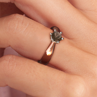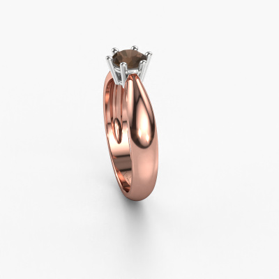 Der oben gezeigte Verlobungsring wird Fay genannt. Wir nennen das einen Solitär-Ring, denn er hat einen einzelnen Edelstein. Es ist ein 14 Karat Roségold Verlobungsring, mit 5 mm rund Rauchquarz. Dieser traditionell Roségold Solitär-Ring mit exquisitem, rund Rauchquarz ist ein schöner Verlobungsring. Die offenen Krappen ermöglichen, dass Licht aus mehr Winkeln auf den Edelstein trifft. Der Ring besticht auch durch die hohe Positionierung des Edelsteins. Denn Rauchquarz symbolisieren wahre Liebe und Reinheit und machen sie damit zum perfekten Geschenk für die Liebe Ihres Lebens. Das Symbol der ewigen Liebe ist das Herzstück dieses Solitär-Rings. Wie ein Rauchquarz haben auch alle anderen Arten von Edelmetallen ihre eigenen, zugeschriebenen symbolischen Bedeutungen. Diese Solitär Verlobungsring können Sie selbst zusammenstellen in verschiedenen Edelmetall Kombinationen. Dieser hat die Kombination 14 Karat Roségold mit Weißgold. Jedes Schmuckstück wird von unseren Meister-Goldschmieden in unserem eigenen Studio für Sie gefertigt.Durch die Kombination modernster Technik mit uralter Handwerkskunst können wir alle Verlobungsringe in unserem eigenen Studio anfertigen. Jedes Schmuckstück wird auf Anfrage gefertigt. Das ist vorteilhaft, weil wir Ihnen dadurch einen Preis anbieten können, den Sie nirgendwo anders finden.Haben Sie irgendwo einen bestimmten Verlobungsring gefunden, den Sie Ihrem Liebsten schenken möchten? Sie können uns gerne sagen, was Sie wollen und wir werden Ihr Design in einen Einzigartigen traditionell Verlobungsring verwandeln. Sie können die Entwicklungen Ihres Ringdesigns verfolgen, da wir 3D-Zeichnungen verwenden. Das gibt Ihnen eine realistische Vorschau, wie Ihr Design aussehen wird. Sie können auch einen Dummy vorbestellen. Ein Dummy ist ein Kunststoffring, der nach Ihrem Ringdesign gestaltet werden kann. Sie können ihn anprobieren und prüfen, ob seine Breite und Größe für Sie geeignet sind. Wir senden Ihnen gerne ein unverbindliches Angebot zu einem fairen Preis/Leistungsverhältnis. Sie werden in Anbetracht der Qualität des Rings und der Edelsteine überrascht sein.Um es einfacher zu machen, bieten wir eine kostenlose 30-tägige Rücksendung.