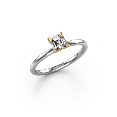 Der oben gezeigte Verlobungsring wird Crystal ASSC 1 genannt. Wir nennen das einen Solitär-Ring, denn er hat einen einzelnen Edelstein. Es ist ein 14 Karat Weißgold Verlobungsring, mit 0.50 crt asscher Diamant. Dieser moderne Weißgold Solitär-Ring mit exquisitem, asscher Diamant ist ein schöner Verlobungsring. Die offenen Krappen ermöglichen, dass Licht aus mehr Winkeln auf den Edelstein trifft. Der Ring besticht auch durch die hohe Positionierung des Edelsteins. Denn Diamant symbolisieren wahre Liebe und Reinheit und machen sie damit zum perfekten Geschenk für die Liebe Ihres Lebens. Das Symbol der ewigen Liebe ist das Herzstück dieses Solitär-Rings. Wie ein Diamant haben auch alle anderen Arten von Edelmetallen ihre eigenen, zugeschriebenen symbolischen Bedeutungen. Diese Solitär Verlobungsring können Sie selbst zusammenstellen in verschiedenen Edelmetall Kombinationen. Dieser hat die Kombination 14 Karat Weißgold mit Gold. Jedes Schmuckstück wird hergestellt von einem Team leidenschaftlicher Goldschmiede und Schmuckdesigner. Das wird Ihr Kronjuwel unbedingt zu einem Blickfang machen.Durch die Kombination modernster Technik mit uralter Handwerkskunst können wir alle Verlobungsringe in unserem eigenen Studio anfertigen. Jedes Schmuckstück wird auf Anfrage gefertigt. Das ist vorteilhaft, weil wir Ihnen dadurch einen Preis anbieten können, den Sie nirgendwo anders finden.Unser Team fügt unserer Online-Kollektion täglich neue Designs hinzu. Unsere Designer und Goldschmiede arbeiten zusammen, um das beste Design zu kreieren. Wir bemühen uns, eine vielfältige Kollektion von Schmuckstücken anzubieten. Vielleicht haben Sie ein bestimmtes Design im Sinn. Eines, dass Sie irgendwo gesehen haben. Gerne geben wir Ihnen eine kostenlose Beratung. Wir machen Ihnen ein Angebot, basierend auf einem fairen Preis/Leistungsverhältnis, das Sie verblüffen wird.Um es einfacher zu machen, bieten wir eine kostenlose 30-tägige Rücksendung.