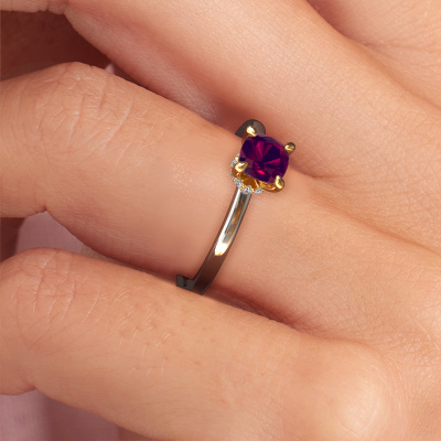 Der oben gezeigte Verlobungsring wird Crystal CUS 3 genannt. Wir nennen das einen Solitär-Ring, denn er hat einen einzelnen Edelstein. Es ist ein 14 Karat Weißgold Verlobungsring, mit 5 mm cussion Rhodolit. Dieser modische Weißgold Solitär-Ring mit exquisitem, cussion Rhodolit ist ein schöner Verlobungsring. Die offenen Krappen ermöglichen, dass Licht aus mehr Winkeln auf den Edelstein trifft. Der Ring besticht auch durch die hohe Positionierung des Edelsteins. Denn Rhodolit symbolisieren wahre Liebe und Reinheit und machen sie damit zum perfekten Geschenk für die Liebe Ihres Lebens. Das Symbol der ewigen Liebe ist das Herzstück dieses Solitär-Rings. Wie ein Rhodolit haben auch alle anderen Arten von Edelmetallen ihre eigenen, zugeschriebenen symbolischen Bedeutungen. Diese Solitär Verlobungsring können Sie selbst zusammenstellen in verschiedenen Edelmetall Kombinationen. Dieser hat die Kombination 14 Karat Weißgold mit Gold. Jedes Schmuckstück wird hergestellt von einem Team leidenschaftlicher Goldschmiede und Schmuckdesigner. Das wird Ihr Kronjuwel unbedingt zu einem Blickfang machen.Durch die Kombination modernster Technik mit uralter Handwerkskunst können wir alle Verlobungsringe in unserem eigenen Studio anfertigen. Jedes Schmuckstück wird auf Anfrage gefertigt. Das ist vorteilhaft, weil wir Ihnen dadurch einen Preis anbieten können, den Sie nirgendwo anders finden.Unsere Designer und Goldschmiede arbeiten jeden Tag zusammen und versuchen, neue Schmuckstücke zu kreieren. Vielleicht haben Sie irgendwo einen schönen, modische Verlobungsring gefunden, nach dem Ihr einzigartiger Ring gestaltet werden kann. Setzen Sie sich mit uns in Verbindung. Wir machen Ihnen ein Angebot, basierend auf einem fairen Preis/Leistungsverhältnis, das Sie begeistern wird.Um es einfacher zu machen, bieten wir eine kostenlose 30-tägige Rücksendung.