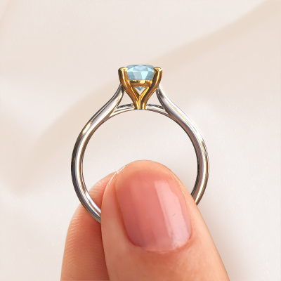 Der oben gezeigte Verlobungsring wird Mignon ovl 1 genannt. Wir nennen das einen Solitär-Ring, denn er hat einen einzelnen Edelstein. Es ist ein 14 Karat Weißgold Verlobungsring, mit 8x6 mm oval Aquamarin. Dieser traditionell Weißgold Solitär-Ring mit exquisitem, oval Aquamarin ist ein schöner Verlobungsring. Die offenen Krappen ermöglichen, dass Licht aus mehr Winkeln auf den Edelstein trifft. Der Ring besticht auch durch die hohe Positionierung des Edelsteins. Denn Aquamarin symbolisieren wahre Liebe und Reinheit und machen sie damit zum perfekten Geschenk für die Liebe Ihres Lebens. Das Symbol der ewigen Liebe ist das Herzstück dieses Solitär-Rings. Wie ein Aquamarin haben auch alle anderen Arten von Edelmetallen ihre eigenen, zugeschriebenen symbolischen Bedeutungen. Diese Solitär Verlobungsring können Sie selbst zusammenstellen in verschiedenen Edelmetall Kombinationen. Dieser hat die Kombination 14 Karat Weißgold mit Gold. Jedes Schmuckstück wird hergestellt von einem Team leidenschaftlicher Goldschmiede und Schmuckdesigner. Das wird Ihr Kronjuwel unbedingt zu einem Blickfang machen.Durch die Kombination modernster Technik mit uralter Handwerkskunst können wir alle Verlobungsringe in unserem eigenen Studio anfertigen. Jedes Schmuckstück wird auf Anfrage gefertigt. Das ist vorteilhaft, weil wir Ihnen dadurch einen Preis anbieten können, den Sie nirgendwo anders finden.Unsere Designer und Goldschmiede arbeiten jeden Tag zusammen und versuchen, neue Schmuckstücke zu kreieren. Vielleicht haben Sie irgendwo einen schönen, traditionell Verlobungsring gefunden, nach dem Ihr einzigartiger Ring gestaltet werden kann. Setzen Sie sich mit uns in Verbindung. Wir machen Ihnen ein Angebot, basierend auf einem fairen Preis/Leistungsverhältnis, das Sie begeistern wird.Um es einfacher zu machen, bieten wir eine kostenlose 30-tägige Rücksendung.