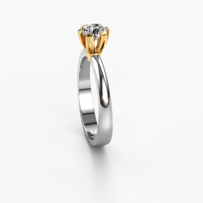 Der oben gezeigte Verlobungsring wird Julia genannt. Wir nennen das einen Solitär-Ring, denn er hat einen einzelnen Edelstein. Es ist ein 14 Karat Weißgold Verlobungsring, mit 0.50 crt rund Diamant. Dieser trendige Weißgold Solitär-Ring mit exquisitem, rund Diamant ist ein schöner Verlobungsring. Die offenen Krappen ermöglichen, dass Licht aus mehr Winkeln auf den Edelstein trifft. Der Ring besticht auch durch die hohe Positionierung des Edelsteins. Denn Diamant symbolisieren wahre Liebe und Reinheit und machen sie damit zum perfekten Geschenk für die Liebe Ihres Lebens. Das Symbol der ewigen Liebe ist das Herzstück dieses Solitär-Rings. Wie ein Diamant haben auch alle anderen Arten von Edelmetallen ihre eigenen, zugeschriebenen symbolischen Bedeutungen. Diese Solitär Verlobungsring können Sie selbst zusammenstellen in verschiedenen Edelmetall Kombinationen. Dieser hat die Kombination 14 Karat Weißgold mit Gold. Jedes Schmuckstück ist um Ihrem Finger Glanz zu verleihen. Jeder Ring wird von unseren Goldschmieden liebevoll von Hand gefertigt.Haben Sie ein bestimmtes Budget? Sie können uns gerne kontaktieren, damit wir Ihre Optionen besprechen können. Wir bieten unsere Verlobungsringe zum garantiert besten Preis, denn wir fertigen sie auf Bestellung. Solche Preise finden Sie nirgendwo anders!Verschiedene Arten von neuen Ringen werden täglich von unserem Team angefertigt. Vielleicht haben Sie irgendwo einen Solitär Verlobungsring gefunden. Einen, den Sie Ihrem Liebsten schenken möchten. Bitte zögern Sie nicht, unseren Schmuckdesignern Ihre Gedanken und Ihr Design zu zeigen. Wir würden gerne Ihr Design in einen trendige Verlobungsring verwandeln. Sie können die Entwicklungen Ihres Ringdesigns verfolgen, da wir sehr detaillierte 3D-Zeichnungen verwenden. Darüber hinaus können Sie einen Dummy des Designs bestellen. Ein Dummy ist ein Kunststoffring, der nach Ihrem Ringdesign gestaltet werden kann. Sie können ihn anprobieren und prüfen, ob der Verlobungsring Ihren Vorstellungen entspricht. Wir senden Ihnen gerne ein unverbindliches Angebot zu einem fairen Preis/Leistungsverhältnis. Das Angebot wird Sie angesichts der Qualität des Rings und der Edelsteine verblüffen.Um es einfacher zu machen, bieten wir eine kostenlose 30-tägige Rücksendung.