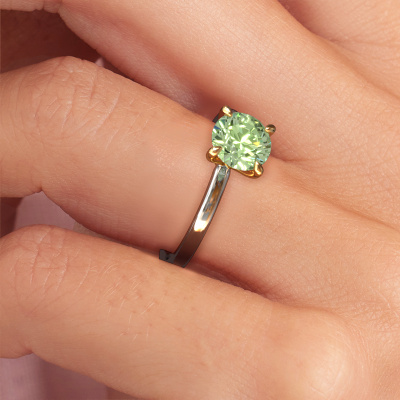 Der oben gezeigte Verlobungsring wird Crystal RND 1 genannt. Wir nennen das einen Solitär-Ring, denn er hat einen einzelnen Edelstein. Es ist ein 14 Karat Weißgold Verlobungsring, mit 6.8 mm rund grüner Labor-Diamant. Dieser klassische Weißgold Solitär-Ring mit exquisitem, rund grüner Labor-Diamant ist ein schöner Verlobungsring. Die offenen Krappen ermöglichen, dass Licht aus mehr Winkeln auf den Edelstein trifft. Der Ring besticht auch durch die hohe Positionierung des Edelsteins. Denn grüner Labor-Diamant symbolisieren wahre Liebe und Reinheit und machen sie damit zum perfekten Geschenk für die Liebe Ihres Lebens. Das Symbol der ewigen Liebe ist das Herzstück dieses Solitär-Rings. Wie ein grüner Labor-Diamant haben auch alle anderen Arten von Edelmetallen ihre eigenen, zugeschriebenen symbolischen Bedeutungen. Diese Solitär Verlobungsring können Sie selbst zusammenstellen in verschiedenen Edelmetall Kombinationen. Dieser hat die Kombination 14 Karat Weißgold mit Gold. Jedes Schmuckstück wird hergestellt von einem Team leidenschaftlicher Goldschmiede und Schmuckdesigner. Das wird Ihr Kronjuwel unbedingt zu einem Blickfang machen.Nach Erhalt Ihrer Bestellung beginnen unsere Goldschmiede mit Leidenschaft den kreativen Prozess und fertigen Ihren Verlobungsring in unserem eigenen Studio. Da wir keine großen Lager haben, werden diese Kosten nicht an Sie weitergegeben. Unsere Preisgestaltung ist der Beweis dafür! Wir bieten Schmuck zum niedrigsten Preis, garantiert.Haben Sie einen bestimmten Ring im Sinn? Eines, dass Sie irgendwo gesehen haben. Bitte zögern Sie nicht, uns zu sagen, was Sie wollen und wir werden Ihr Design in einen Einzigartigen Verlobungsring verwandeln. Sie können die Entwicklungen Ihres Ringdesigns verfolgen, da wir 3D-Zeichnungen verwenden. Das gibt Ihnen eine realistische Vorschau Ihres Designs. Wir senden Ihnen gerne ein unverbindliches Angebot zu einem fairen Preis/Leistungsverhältnis. Es wird Sie erstaunen.Um es einfacher zu machen, bieten wir eine kostenlose 30-tägige Rücksendung.