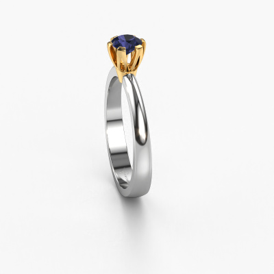 Der oben gezeigte Verlobungsring wird Julia genannt. Wir nennen das einen Solitär-Ring, denn er hat einen einzelnen Edelstein. Es ist ein 14 Karat Weißgold Verlobungsring, mit 4 mm rund Saphir. Dieser trendige Weißgold Solitär-Ring mit exquisitem, rund Saphir ist ein schöner Verlobungsring. Die offenen Krappen ermöglichen, dass Licht aus mehr Winkeln auf den Edelstein trifft. Der Ring besticht auch durch die hohe Positionierung des Edelsteins. Denn Saphir symbolisieren wahre Liebe und Reinheit und machen sie damit zum perfekten Geschenk für die Liebe Ihres Lebens. Das Symbol der ewigen Liebe ist das Herzstück dieses Solitär-Rings. Wie ein Saphir haben auch alle anderen Arten von Edelmetallen ihre eigenen, zugeschriebenen symbolischen Bedeutungen. Diese Solitär Verlobungsring können Sie selbst zusammenstellen in verschiedenen Edelmetall Kombinationen. Dieser hat die Kombination 14 Karat Weißgold mit Gold. Jedes Schmuckstück ist um Ihrem Finger Glanz zu verleihen. Jeder Ring wird von unseren Goldschmieden liebevoll von Hand gefertigt.Haben Sie ein bestimmtes Budget? Sie können uns gerne kontaktieren, damit wir Ihre Optionen besprechen können. Wir bieten unsere Verlobungsringe zum garantiert besten Preis, denn wir fertigen sie auf Bestellung. Solche Preise finden Sie nirgendwo anders!Verschiedene Arten von neuen Ringen werden täglich von unserem Team angefertigt. Vielleicht haben Sie irgendwo einen Solitär Verlobungsring gefunden. Einen, den Sie Ihrem Liebsten schenken möchten. Bitte zögern Sie nicht, unseren Schmuckdesignern Ihre Gedanken und Ihr Design zu zeigen. Wir würden gerne Ihr Design in einen trendige Verlobungsring verwandeln. Sie können die Entwicklungen Ihres Ringdesigns verfolgen, da wir sehr detaillierte 3D-Zeichnungen verwenden. Darüber hinaus können Sie einen Dummy des Designs bestellen. Ein Dummy ist ein Kunststoffring, der nach Ihrem Ringdesign gestaltet werden kann. Sie können ihn anprobieren und prüfen, ob der Verlobungsring Ihren Vorstellungen entspricht. Wir senden Ihnen gerne ein unverbindliches Angebot zu einem fairen Preis/Leistungsverhältnis. Das Angebot wird Sie angesichts der Qualität des Rings und der Edelsteine verblüffen.Um es einfacher zu machen, bieten wir eine kostenlose 30-tägige Rücksendung.
