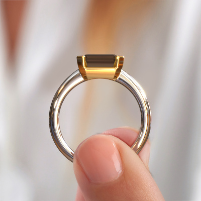 Der oben gezeigte Verlobungsring wird Tayler EME genannt. Wir nennen das einen Solitär-Ring, denn er hat einen einzelnen Edelstein. Es ist ein 14 Karat Weißgold Verlobungsring, mit 8x6 mm smaragd schliff Rauchquarz. Dieser moderne Weißgold Solitär-Ring mit exquisitem, smaragd schliff Rauchquarz ist ein schöner Verlobungsring. Die offenen Krappen ermöglichen, dass Licht aus mehr Winkeln auf den Edelstein trifft. Der Ring besticht auch durch die hohe Positionierung des Edelsteins. Denn Rauchquarz symbolisieren wahre Liebe und Reinheit und machen sie damit zum perfekten Geschenk für die Liebe Ihres Lebens. Das Symbol der ewigen Liebe ist das Herzstück dieses Solitär-Rings. Wie ein Rauchquarz haben auch alle anderen Arten von Edelmetallen ihre eigenen, zugeschriebenen symbolischen Bedeutungen. Diese Solitär Verlobungsring können Sie selbst zusammenstellen in verschiedenen Edelmetall Kombinationen. Dieser hat die Kombination 14 Karat Weißgold mit Gold. Jedes Schmuckstück ist um Ihrem Finger Glanz zu verleihen. Jeder Ring wird von unseren Goldschmieden liebevoll von Hand gefertigt.Nach Erhalt Ihrer Bestellung beginnen unsere Goldschmiede mit Leidenschaft den kreativen Prozess und fertigen Ihren Verlobungsring in unserem eigenen Studio. Da wir keine großen Lager haben, werden diese Kosten nicht an Sie weitergegeben. Unsere Preisgestaltung ist der Beweis dafür! Wir bieten Schmuck zum niedrigsten Preis, garantiert.Unsere Designer und Goldschmiede arbeiten jeden Tag zusammen und versuchen, neue Schmuckstücke zu kreieren. Vielleicht haben Sie irgendwo einen schönen, moderne Verlobungsring gefunden, nach dem Ihr einzigartiger Ring gestaltet werden kann. Setzen Sie sich mit uns in Verbindung. Wir machen Ihnen ein Angebot, basierend auf einem fairen Preis/Leistungsverhältnis, das Sie begeistern wird.Um es einfacher zu machen, bieten wir eine kostenlose 30-tägige Rücksendung.
