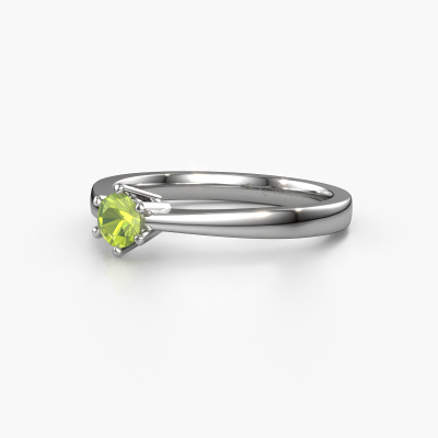 Der oben gezeigte Verlobungsring wird Noortje genannt. Wir nennen das einen Solitär-Ring, denn er hat einen einzelnen Edelstein. Es ist ein 14 Karat Weißgold Verlobungsring, mit 4 mm rund Peridot. Dieser klassische Weißgold Solitär-Ring mit exquisitem, rund Peridot ist ein schöner Verlobungsring. Die offenen Krappen ermöglichen, dass Licht aus mehr Winkeln auf den Edelstein trifft. Der Ring besticht auch durch die hohe Positionierung des Edelsteins. Denn Peridot symbolisieren wahre Liebe und Reinheit und machen sie damit zum perfekten Geschenk für die Liebe Ihres Lebens. Das Symbol der ewigen Liebe ist das Herzstück dieses Solitär-Rings. Wie ein Peridot haben auch alle anderen Arten von Edelmetallen ihre eigenen, zugeschriebenen symbolischen Bedeutungen. Diese Solitär Verlobungsring können Sie selbst zusammenstellen in verschiedenen Edelmetall Kombinationen. Dieser hat die Kombination 14 Karat Weißgold mit Weißgold. Jedes Schmuckstück wird hergestellt von einem Team leidenschaftlicher Goldschmiede und Schmuckdesigner. Das wird Ihr Kronjuwel unbedingt zu einem Blickfang machen.Durch die Kombination modernster Technik mit uralter Handwerkskunst können wir alle Verlobungsringe in unserem eigenen Studio anfertigen. Jedes Schmuckstück wird auf Anfrage gefertigt. Das ist vorteilhaft, weil wir Ihnen dadurch einen Preis anbieten können, den Sie nirgendwo anders finden.Unser Team fügt unserer Online-Kollektion täglich neue Designs hinzu. Unsere Designer und Goldschmiede arbeiten zusammen, um das beste Design zu kreieren. Wir bemühen uns, eine vielfältige Kollektion von Schmuckstücken anzubieten. Vielleicht haben Sie ein bestimmtes Design im Sinn. Eines, dass Sie irgendwo gesehen haben. Gerne geben wir Ihnen eine kostenlose Beratung. Wir machen Ihnen ein Angebot, basierend auf einem fairen Preis/Leistungsverhältnis, das Sie verblüffen wird.Um es einfacher zu machen, bieten wir eine kostenlose 30-tägige Rücksendung.