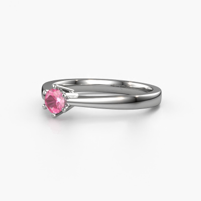 Der oben gezeigte Verlobungsring wird Noortje genannt. Wir nennen das einen Solitär-Ring, denn er hat einen einzelnen Edelstein. Es ist ein 14 Karat Weißgold Verlobungsring, mit 4 mm rund Pink Saphir. Dieser klassische Weißgold Solitär-Ring mit exquisitem, rund Pink Saphir ist ein schöner Verlobungsring. Die offenen Krappen ermöglichen, dass Licht aus mehr Winkeln auf den Edelstein trifft. Der Ring besticht auch durch die hohe Positionierung des Edelsteins. Denn Pink Saphir symbolisieren wahre Liebe und Reinheit und machen sie damit zum perfekten Geschenk für die Liebe Ihres Lebens. Das Symbol der ewigen Liebe ist das Herzstück dieses Solitär-Rings. Wie ein Pink Saphir haben auch alle anderen Arten von Edelmetallen ihre eigenen, zugeschriebenen symbolischen Bedeutungen. Diese Solitär Verlobungsring können Sie selbst zusammenstellen in verschiedenen Edelmetall Kombinationen. Dieser hat die Kombination 14 Karat Weißgold mit Weißgold. Jedes Schmuckstück wird hergestellt von einem Team leidenschaftlicher Goldschmiede und Schmuckdesigner. Das wird Ihr Kronjuwel unbedingt zu einem Blickfang machen.Durch die Kombination modernster Technik mit uralter Handwerkskunst können wir alle Verlobungsringe in unserem eigenen Studio anfertigen. Jedes Schmuckstück wird auf Anfrage gefertigt. Das ist vorteilhaft, weil wir Ihnen dadurch einen Preis anbieten können, den Sie nirgendwo anders finden.Unser Team fügt unserer Online-Kollektion täglich neue Designs hinzu. Unsere Designer und Goldschmiede arbeiten zusammen, um das beste Design zu kreieren. Wir bemühen uns, eine vielfältige Kollektion von Schmuckstücken anzubieten. Vielleicht haben Sie ein bestimmtes Design im Sinn. Eines, dass Sie irgendwo gesehen haben. Gerne geben wir Ihnen eine kostenlose Beratung. Wir machen Ihnen ein Angebot, basierend auf einem fairen Preis/Leistungsverhältnis, das Sie verblüffen wird.Um es einfacher zu machen, bieten wir eine kostenlose 30-tägige Rücksendung.