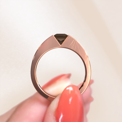 Dieser Verlobungsring aus 14 Karat Roségold mit 4 mm Rauchquarz heißt Arlena 1. Die Spann Fassung macht ihn zu einem besonderen Verlobungsring, weil sie den Rauchquarz betont. Unser erfahrener Goldschmiede verwendet spezielle Techniken, um den Rauchquarz in diesen Roségold Ring zu setzen. Mit diesen Techniken wird das Licht frei reflektiert. Das verleiht dem Ring maximalen Glanz und eine glamouröse Erscheinung. Ein wahres Kunstwerk! Das Endprodukt ist ein einzigartiger Ring mit einer trendigen Erscheinung, der von unserem erfahrenen Juwelier leidenschaftlich in Handarbeit gefertigt wird. Ein einzigartiger Ring, entworfen für die Liebe Ihres Lebens. Wenn Sie diesen Ring wählen, empfehlen wir Ihnen einen Breiten Edelstein wie einen Diamant oder Saphir. Der Ring muss während der Herstellung viel Druck aushalten können. Jedes Schmuckstück wird nur für Sie persönlich hergestellt, mit Liebe zum Detail und Design.Durch die Kombination modernster Technik mit uralter Handwerkskunst können wir alle Verlobungsringe in unserem eigenen Studio anfertigen. Jedes Schmuckstück wird auf Anfrage gefertigt. Das ist vorteilhaft, weil wir Ihnen dadurch einen Preis anbieten können, den Sie nirgendwo anders finden.Haben Sie einen bestimmten Ring im Sinn? Eines, dass Sie irgendwo gesehen haben. Bitte zögern Sie nicht, uns zu sagen, was Sie wollen und wir werden Ihr Design in einen Einzigartigen Verlobungsring verwandeln. Sie können die Entwicklungen Ihres Ringdesigns verfolgen, da wir 3D-Zeichnungen verwenden. Das gibt Ihnen eine realistische Vorschau Ihres Designs. Wir senden Ihnen gerne ein unverbindliches Angebot zu einem fairen Preis/Leistungsverhältnis. Es wird Sie erstaunen.Um es einfacher zu machen, bieten wir eine kostenlose 30-tägige Rücksendung.