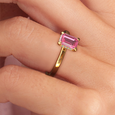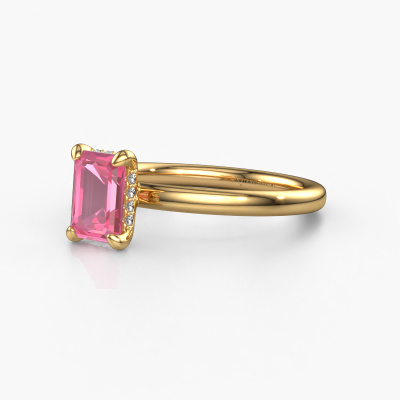 Der oben gezeigte Verlobungsring wird Simone EME 2 genannt. Wir nennen das einen Solitär-Ring, denn er hat einen einzelnen Edelstein. Es ist ein 14 Karat Gold Verlobungsring, mit 7x5 mm smaragd schliff Pink Saphir. Dieser außergewöhnliche, traditionell Gold Solitär-Verlobungsring mit einem schönen, smaragd schliff Pink Saphir soll Ihrem Antrag ein Funkeln geben. Die offenen Krappen ermöglichen, dass Licht aus mehr Winkeln auf den Edelstein trifft. Wussten Sie, dass ein Pink Saphir für ewige Liebe und Treue steht? Das macht ihn zum perfekten Mittelstück. Unsere Goldschmiede positioniert den Edelstein Ihrer Wahl sorgfältig oben auf dem Ring. Dadurch sticht er hervor. Jedes Schmuckstück wird hergestellt von einem Team leidenschaftlicher Goldschmiede und Schmuckdesigner. Das wird Ihr Kronjuwel unbedingt zu einem Blickfang machen.Mit unserer modernen Technik können wir Schmuckstücke von höchster Qualität mit größter Sorgfalt für Sie entwerfen und anpassen. Unsere Verlobungsringe sind immer um 30 Prozent günstiger als bei anderen Juwelieren. Wir fertigen Verlobungsringe auf Bestellung, also müssen wir keine großen Lager unterhalten. Wenn Sie ein bestimmtes Budget haben, beraten wir Sie gerne entsprechend.Haben Sie einen bestimmten Ring im Sinn? Eines, dass Sie irgendwo gesehen haben. Bitte zögern Sie nicht, uns zu sagen, was Sie wollen und wir werden Ihr Design in einen Einzigartigen Verlobungsring verwandeln. Sie können die Entwicklungen Ihres Ringdesigns verfolgen, da wir 3D-Zeichnungen verwenden. Das gibt Ihnen eine realistische Vorschau Ihres Designs. Wir senden Ihnen gerne ein unverbindliches Angebot zu einem fairen Preis/Leistungsverhältnis. Es wird Sie erstaunen.Um es einfacher zu machen, bieten wir eine kostenlose 30-tägige Rücksendung.