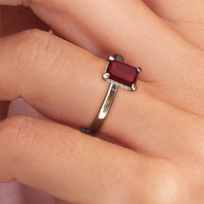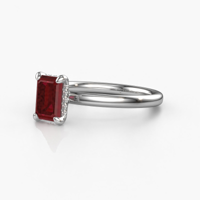 Der oben gezeigte Verlobungsring wird Simone EME 2 genannt. Wir nennen das einen Solitär-Ring, denn er hat einen einzelnen Edelstein. Es ist ein Platin Verlobungsring, mit 7x5 mm smaragd schliff Rubin. Dieser außergewöhnliche, traditionell Platin Solitär-Verlobungsring mit einem schönen, smaragd schliff Rubin soll Ihrem Antrag ein Funkeln geben. Die offenen Krappen ermöglichen, dass Licht aus mehr Winkeln auf den Edelstein trifft. Wussten Sie, dass ein Rubin für ewige Liebe und Treue steht? Das macht ihn zum perfekten Mittelstück. Unsere Goldschmiede positioniert den Edelstein Ihrer Wahl sorgfältig oben auf dem Ring. Dadurch sticht er hervor. Jedes Schmuckstück wird hergestellt von einem Team leidenschaftlicher Goldschmiede und Schmuckdesigner. Das wird Ihr Kronjuwel unbedingt zu einem Blickfang machen.Mit unserer modernen Technik können wir Schmuckstücke von höchster Qualität mit größter Sorgfalt für Sie entwerfen und anpassen. Unsere Verlobungsringe sind immer um 30 Prozent günstiger als bei anderen Juwelieren. Wir fertigen Verlobungsringe auf Bestellung, also müssen wir keine großen Lager unterhalten. Wenn Sie ein bestimmtes Budget haben, beraten wir Sie gerne entsprechend.Haben Sie einen bestimmten Ring im Sinn? Eines, dass Sie irgendwo gesehen haben. Bitte zögern Sie nicht, uns zu sagen, was Sie wollen und wir werden Ihr Design in einen Einzigartigen Verlobungsring verwandeln. Sie können die Entwicklungen Ihres Ringdesigns verfolgen, da wir 3D-Zeichnungen verwenden. Das gibt Ihnen eine realistische Vorschau Ihres Designs. Wir senden Ihnen gerne ein unverbindliches Angebot zu einem fairen Preis/Leistungsverhältnis. Es wird Sie erstaunen.Um es einfacher zu machen, bieten wir eine kostenlose 30-tägige Rücksendung.