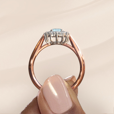 Der oben gezeigte Verlobungsring wird Margien 1 genannt. Wir nennen das einen Lady Diana Ring. Mit einem Lady Diana Verlobungsring ist der größere, zentrale Edelstein von kleineren Seitensteinen umgeben. Dieser Ring aus 14 Karat Roségold ist besetzt mit einem 7x5 mm oval Aquamarin, umgeben von kleineren Diamanten als Seitensteinen. Sie kennen wahrscheinlich diesen außergewöhnlichen, traditionell Roségold Lady Diana Ring. Es ist der berühmteste Verlobungsring der Welt. Ausschließlich für die bemerkenswerteste Person in Ihrem Leben bestimmt! Ein wirklich atemberaubender Aspekt dieses speziellen Lady Diana Rings ist sein zentraler Aquamarin. Die kleineren Seitensteine, die den Aquamarin umfassen, betonen den Glanz des mittleren Edelsteins. Dadurch sieht es so aus, als ob sie zu einem großen Edelstein verschmelzen. Aufgrund seines Designs ist das bei Lady Di Ring noch deutlicher. Unsere erfahrenen Goldschmiede möchten einen einzigartigen Ring für Sie kreieren. Wir entwerfen unseren Ring in unserem eigenen Studio. Das macht es Ihnen leicht, den Ring nach Ihren Wünschen zu gestalten. Jedes Schmuckstück wird von unseren Meister-Goldschmieden in unserem eigenen Studio für Sie gefertigt.Nachdem Sie Ihre Bestellung aufgegeben haben, beginnen unsere Goldschmiede mit dem kreativen Prozess der Herstellung Ihres Margien 1 Verlobungsring. Wir haben keine Lager. Das ist vorteilhaft, da diese Kosten nicht an Sie weitergegeben werden. Daher sind wir in der Lage, Schmuck zu außergewöhnlich niedrigen Preisen anzubieten.Unsere Designer und Goldschmiede arbeiten jeden Tag zusammen und versuchen, neue Schmuckstücke zu kreieren. Vielleicht haben Sie irgendwo einen schönen, traditionell Verlobungsring gefunden, nach dem Ihr einzigartiger Ring gestaltet werden kann. Setzen Sie sich mit uns in Verbindung. Wir machen Ihnen ein Angebot, basierend auf einem fairen Preis/Leistungsverhältnis, das Sie begeistern wird.Um es einfacher zu machen, bieten wir eine kostenlose 30-tägige Rücksendung.
