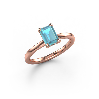 Der oben gezeigte Verlobungsring wird Simone EME 2 genannt. Wir nennen das einen Solitär-Ring, denn er hat einen einzelnen Edelstein. Es ist ein 14 Karat Roségold Verlobungsring, mit 7x5 mm smaragd schliff Blau Topas. Dieser außergewöhnliche, traditionell Roségold Solitär-Verlobungsring mit einem schönen, smaragd schliff Blau Topas soll Ihrem Antrag ein Funkeln geben. Die offenen Krappen ermöglichen, dass Licht aus mehr Winkeln auf den Edelstein trifft. Wussten Sie, dass ein Blau Topas für ewige Liebe und Treue steht? Das macht ihn zum perfekten Mittelstück. Unsere Goldschmiede positioniert den Edelstein Ihrer Wahl sorgfältig oben auf dem Ring. Dadurch sticht er hervor. Jedes Schmuckstück wird hergestellt von einem Team leidenschaftlicher Goldschmiede und Schmuckdesigner. Das wird Ihr Kronjuwel unbedingt zu einem Blickfang machen.Mit unserer modernen Technik können wir Schmuckstücke von höchster Qualität mit größter Sorgfalt für Sie entwerfen und anpassen. Unsere Verlobungsringe sind immer um 30 Prozent günstiger als bei anderen Juwelieren. Wir fertigen Verlobungsringe auf Bestellung, also müssen wir keine großen Lager unterhalten. Wenn Sie ein bestimmtes Budget haben, beraten wir Sie gerne entsprechend.Haben Sie einen bestimmten Ring im Sinn? Eines, dass Sie irgendwo gesehen haben. Bitte zögern Sie nicht, uns zu sagen, was Sie wollen und wir werden Ihr Design in einen Einzigartigen Verlobungsring verwandeln. Sie können die Entwicklungen Ihres Ringdesigns verfolgen, da wir 3D-Zeichnungen verwenden. Das gibt Ihnen eine realistische Vorschau Ihres Designs. Wir senden Ihnen gerne ein unverbindliches Angebot zu einem fairen Preis/Leistungsverhältnis. Es wird Sie erstaunen.Um es einfacher zu machen, bieten wir eine kostenlose 30-tägige Rücksendung.