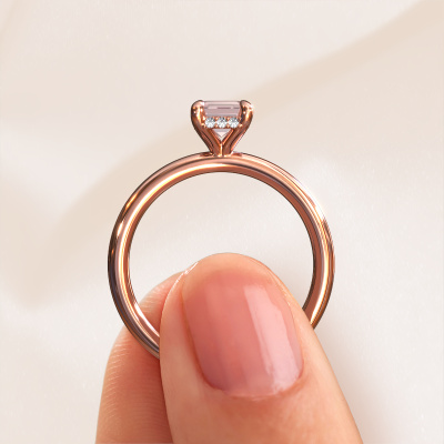 Der oben gezeigte Verlobungsring wird Simone EME 2 genannt. Wir nennen das einen Solitär-Ring, denn er hat einen einzelnen Edelstein. Es ist ein 585 Roségold Verlobungsring, mit 7x5 mm smaragd schliff Morganit Champagner. Dieser außergewöhnliche, traditionell Roségold Solitär-Verlobungsring mit einem schönen, smaragd schliff Morganit Champagner soll Ihrem Antrag ein Funkeln geben. Die offenen Krappen ermöglichen, dass Licht aus mehr Winkeln auf den Edelstein trifft. Wussten Sie, dass ein Morganit Champagner für ewige Liebe und Treue steht? Das macht ihn zum perfekten Mittelstück. Unsere Goldschmiede positioniert den Edelstein Ihrer Wahl sorgfältig oben auf dem Ring. Dadurch sticht er hervor. Jedes Schmuckstück wird hergestellt von einem Team leidenschaftlicher Goldschmiede und Schmuckdesigner. Das wird Ihr Kronjuwel unbedingt zu einem Blickfang machen.Mit unserer modernen Technik können wir Schmuckstücke von höchster Qualität mit größter Sorgfalt für Sie entwerfen und anpassen. Unsere Verlobungsringe sind immer um 30 Prozent günstiger als bei anderen Juwelieren. Wir fertigen Verlobungsringe auf Bestellung, also müssen wir keine großen Lager unterhalten. Wenn Sie ein bestimmtes Budget haben, beraten wir Sie gerne entsprechend.Haben Sie einen bestimmten Ring im Sinn? Eines, dass Sie irgendwo gesehen haben. Bitte zögern Sie nicht, uns zu sagen, was Sie wollen und wir werden Ihr Design in einen Einzigartigen Verlobungsring verwandeln. Sie können die Entwicklungen Ihres Ringdesigns verfolgen, da wir 3D-Zeichnungen verwenden. Das gibt Ihnen eine realistische Vorschau Ihres Designs. Wir senden Ihnen gerne ein unverbindliches Angebot zu einem fairen Preis/Leistungsverhältnis. Es wird Sie erstaunen.Um es einfacher zu machen, bieten wir eine kostenlose 30-tägige Rücksendung.