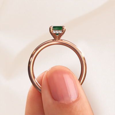 Der oben gezeigte Verlobungsring wird Simone EME 2 genannt. Wir nennen das einen Solitär-Ring, denn er hat einen einzelnen Edelstein. Es ist ein 14 Karat Roségold Verlobungsring, mit 7x5 mm smaragd schliff Smaragd. Dieser außergewöhnliche, traditionell Roségold Solitär-Verlobungsring mit einem schönen, smaragd schliff Smaragd soll Ihrem Antrag ein Funkeln geben. Die offenen Krappen ermöglichen, dass Licht aus mehr Winkeln auf den Edelstein trifft. Wussten Sie, dass ein Smaragd für ewige Liebe und Treue steht? Das macht ihn zum perfekten Mittelstück. Unsere Goldschmiede positioniert den Edelstein Ihrer Wahl sorgfältig oben auf dem Ring. Dadurch sticht er hervor. Jedes Schmuckstück wird hergestellt von einem Team leidenschaftlicher Goldschmiede und Schmuckdesigner. Das wird Ihr Kronjuwel unbedingt zu einem Blickfang machen.Mit unserer modernen Technik können wir Schmuckstücke von höchster Qualität mit größter Sorgfalt für Sie entwerfen und anpassen. Unsere Verlobungsringe sind immer um 30 Prozent günstiger als bei anderen Juwelieren. Wir fertigen Verlobungsringe auf Bestellung, also müssen wir keine großen Lager unterhalten. Wenn Sie ein bestimmtes Budget haben, beraten wir Sie gerne entsprechend.Haben Sie einen bestimmten Ring im Sinn? Eines, dass Sie irgendwo gesehen haben. Bitte zögern Sie nicht, uns zu sagen, was Sie wollen und wir werden Ihr Design in einen Einzigartigen Verlobungsring verwandeln. Sie können die Entwicklungen Ihres Ringdesigns verfolgen, da wir 3D-Zeichnungen verwenden. Das gibt Ihnen eine realistische Vorschau Ihres Designs. Wir senden Ihnen gerne ein unverbindliches Angebot zu einem fairen Preis/Leistungsverhältnis. Es wird Sie erstaunen.Um es einfacher zu machen, bieten wir eine kostenlose 30-tägige Rücksendung.