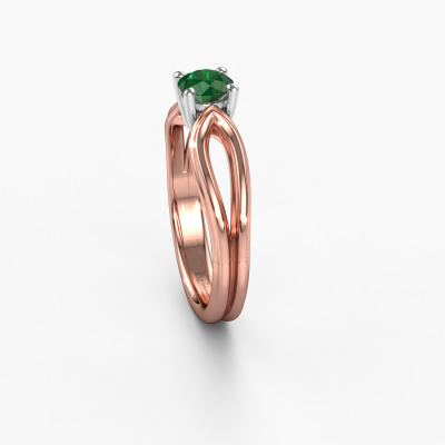 Der oben gezeigte Verlobungsring wird Antonia rnd 1 genannt. Wir nennen das einen Solitär-Ring, denn er hat einen einzelnen Edelstein. Es ist ein 14 Karat Roségold Verlobungsring, mit 5 mm rund Smaragd. Dieser außergewöhnliche, traditionell Roségold Solitär-Verlobungsring mit einem schönen, rund Smaragd soll Ihrem Antrag ein Funkeln geben. Die offenen Krappen ermöglichen, dass Licht aus mehr Winkeln auf den Edelstein trifft. Wussten Sie, dass ein Smaragd für ewige Liebe und Treue steht? Das macht ihn zum perfekten Mittelstück. Unsere Goldschmiede positioniert den Edelstein Ihrer Wahl sorgfältig oben auf dem Ring. Dadurch sticht er hervor. Jedes Schmuckstück wird von unseren Meister-Goldschmieden in unserem eigenen Studio für Sie gefertigt.Haben Sie ein bestimmtes Budget? Sie können uns gerne kontaktieren, damit wir Ihre Optionen besprechen können. Wir bieten unsere Verlobungsringe zum garantiert besten Preis, denn wir fertigen sie auf Bestellung. Solche Preise finden Sie nirgendwo anders!Verschiedene Arten von neuen Ringen werden täglich von unserem Team angefertigt. Vielleicht haben Sie irgendwo einen Solitär Verlobungsring gefunden. Einen, den Sie Ihrem Liebsten schenken möchten. Bitte zögern Sie nicht, unseren Schmuckdesignern Ihre Gedanken und Ihr Design zu zeigen. Wir würden gerne Ihr Design in einen traditionell Verlobungsring verwandeln. Sie können die Entwicklungen Ihres Ringdesigns verfolgen, da wir sehr detaillierte 3D-Zeichnungen verwenden. Darüber hinaus können Sie einen Dummy des Designs bestellen. Ein Dummy ist ein Kunststoffring, der nach Ihrem Ringdesign gestaltet werden kann. Sie können ihn anprobieren und prüfen, ob der Verlobungsring Ihren Vorstellungen entspricht. Wir senden Ihnen gerne ein unverbindliches Angebot zu einem fairen Preis/Leistungsverhältnis. Das Angebot wird Sie angesichts der Qualität des Rings und der Edelsteine verblüffen.Um es einfacher zu machen, bieten wir eine kostenlose 30-tägige Rücksendung.