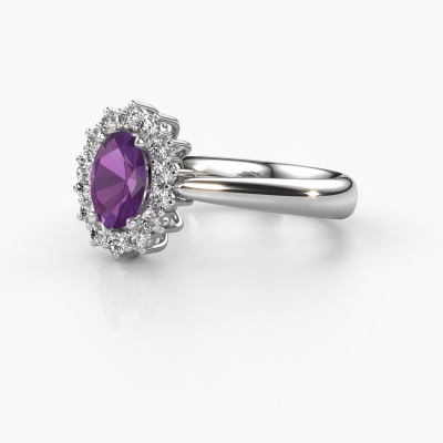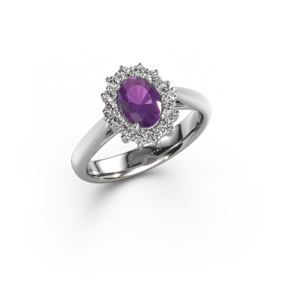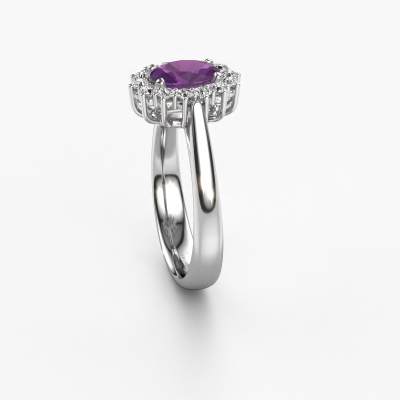 Der oben gezeigte Verlobungsring wird Margien 1 genannt. Wir nennen das einen Lady Diana Ring. Mit einem Lady Diana Verlobungsring ist der größere, zentrale Edelstein von kleineren Seitensteinen umgeben. Dieser Ring aus 14 Karat Weißgold ist besetzt mit einem 7x5 mm oval Amethyst, umgeben von kleineren Diamanten als Seitensteinen. Sie kennen wahrscheinlich diesen außergewöhnlichen, traditionell Weißgold Lady Diana Ring. Es ist der berühmteste Verlobungsring der Welt. Ausschließlich für die bemerkenswerteste Person in Ihrem Leben bestimmt! Ein wirklich atemberaubender Aspekt dieses speziellen Lady Diana Rings ist sein zentraler Amethyst. Die kleineren Seitensteine, die den Amethyst umfassen, betonen den Glanz des mittleren Edelsteins. Dadurch sieht es so aus, als ob sie zu einem großen Edelstein verschmelzen. Aufgrund seines Designs ist das bei Lady Di Ring noch deutlicher. Unsere erfahrenen Goldschmiede möchten einen einzigartigen Ring für Sie kreieren. Wir entwerfen unseren Ring in unserem eigenen Studio. Das macht es Ihnen leicht, den Ring nach Ihren Wünschen zu gestalten. Jedes Schmuckstück wird von unseren Meister-Goldschmieden in unserem eigenen Studio für Sie gefertigt.Nachdem Sie Ihre Bestellung aufgegeben haben, beginnen unsere Goldschmiede mit dem kreativen Prozess der Herstellung Ihres Margien 1 Verlobungsring. Wir haben keine Lager. Das ist vorteilhaft, da diese Kosten nicht an Sie weitergegeben werden. Daher sind wir in der Lage, Schmuck zu außergewöhnlich niedrigen Preisen anzubieten.Unsere Designer und Goldschmiede arbeiten jeden Tag zusammen und versuchen, neue Schmuckstücke zu kreieren. Vielleicht haben Sie irgendwo einen schönen, traditionell Verlobungsring gefunden, nach dem Ihr einzigartiger Ring gestaltet werden kann. Setzen Sie sich mit uns in Verbindung. Wir machen Ihnen ein Angebot, basierend auf einem fairen Preis/Leistungsverhältnis, das Sie begeistern wird.Um es einfacher zu machen, bieten wir eine kostenlose 30-tägige Rücksendung.