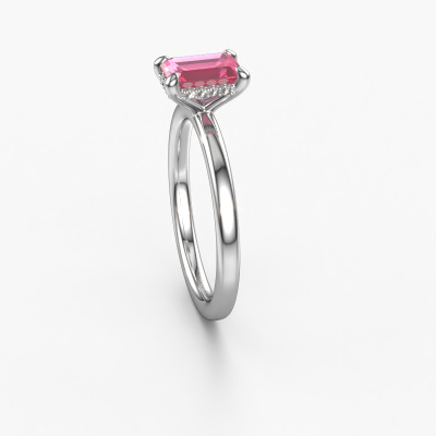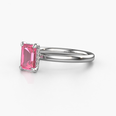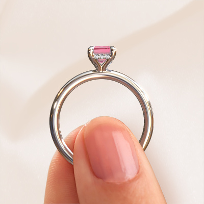 Der oben gezeigte Verlobungsring wird Simone EME 2 genannt. Wir nennen das einen Solitär-Ring, denn er hat einen einzelnen Edelstein. Es ist ein 14 Karat Weißgold Verlobungsring, mit 7x5 mm smaragd schliff Pink Saphir. Dieser außergewöhnliche, traditionell Weißgold Solitär-Verlobungsring mit einem schönen, smaragd schliff Pink Saphir soll Ihrem Antrag ein Funkeln geben. Die offenen Krappen ermöglichen, dass Licht aus mehr Winkeln auf den Edelstein trifft. Wussten Sie, dass ein Pink Saphir für ewige Liebe und Treue steht? Das macht ihn zum perfekten Mittelstück. Unsere Goldschmiede positioniert den Edelstein Ihrer Wahl sorgfältig oben auf dem Ring. Dadurch sticht er hervor. Jedes Schmuckstück wird hergestellt von einem Team leidenschaftlicher Goldschmiede und Schmuckdesigner. Das wird Ihr Kronjuwel unbedingt zu einem Blickfang machen.Mit unserer modernen Technik können wir Schmuckstücke von höchster Qualität mit größter Sorgfalt für Sie entwerfen und anpassen. Unsere Verlobungsringe sind immer um 30 Prozent günstiger als bei anderen Juwelieren. Wir fertigen Verlobungsringe auf Bestellung, also müssen wir keine großen Lager unterhalten. Wenn Sie ein bestimmtes Budget haben, beraten wir Sie gerne entsprechend.Haben Sie einen bestimmten Ring im Sinn? Eines, dass Sie irgendwo gesehen haben. Bitte zögern Sie nicht, uns zu sagen, was Sie wollen und wir werden Ihr Design in einen Einzigartigen Verlobungsring verwandeln. Sie können die Entwicklungen Ihres Ringdesigns verfolgen, da wir 3D-Zeichnungen verwenden. Das gibt Ihnen eine realistische Vorschau Ihres Designs. Wir senden Ihnen gerne ein unverbindliches Angebot zu einem fairen Preis/Leistungsverhältnis. Es wird Sie erstaunen.Um es einfacher zu machen, bieten wir eine kostenlose 30-tägige Rücksendung.