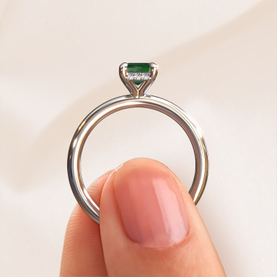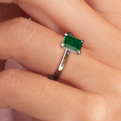 Der oben gezeigte Verlobungsring wird Simone EME 2 genannt. Wir nennen das einen Solitär-Ring, denn er hat einen einzelnen Edelstein. Es ist ein 14 Karat Weißgold Verlobungsring, mit 7x5 mm smaragd schliff Smaragd. Dieser außergewöhnliche, traditionell Weißgold Solitär-Verlobungsring mit einem schönen, smaragd schliff Smaragd soll Ihrem Antrag ein Funkeln geben. Die offenen Krappen ermöglichen, dass Licht aus mehr Winkeln auf den Edelstein trifft. Wussten Sie, dass ein Smaragd für ewige Liebe und Treue steht? Das macht ihn zum perfekten Mittelstück. Unsere Goldschmiede positioniert den Edelstein Ihrer Wahl sorgfältig oben auf dem Ring. Dadurch sticht er hervor. Jedes Schmuckstück wird hergestellt von einem Team leidenschaftlicher Goldschmiede und Schmuckdesigner. Das wird Ihr Kronjuwel unbedingt zu einem Blickfang machen.Mit unserer modernen Technik können wir Schmuckstücke von höchster Qualität mit größter Sorgfalt für Sie entwerfen und anpassen. Unsere Verlobungsringe sind immer um 30 Prozent günstiger als bei anderen Juwelieren. Wir fertigen Verlobungsringe auf Bestellung, also müssen wir keine großen Lager unterhalten. Wenn Sie ein bestimmtes Budget haben, beraten wir Sie gerne entsprechend.Haben Sie einen bestimmten Ring im Sinn? Eines, dass Sie irgendwo gesehen haben. Bitte zögern Sie nicht, uns zu sagen, was Sie wollen und wir werden Ihr Design in einen Einzigartigen Verlobungsring verwandeln. Sie können die Entwicklungen Ihres Ringdesigns verfolgen, da wir 3D-Zeichnungen verwenden. Das gibt Ihnen eine realistische Vorschau Ihres Designs. Wir senden Ihnen gerne ein unverbindliches Angebot zu einem fairen Preis/Leistungsverhältnis. Es wird Sie erstaunen.Um es einfacher zu machen, bieten wir eine kostenlose 30-tägige Rücksendung.