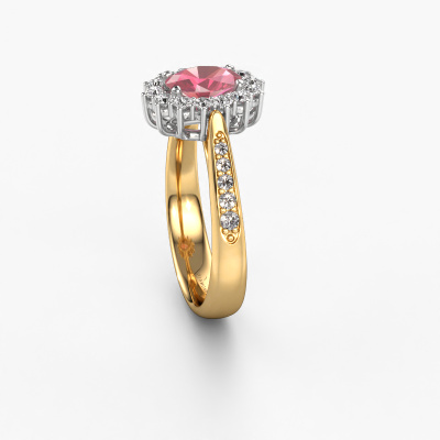 Der oben gezeigte Verlobungsring wird Margien 2 genannt. Wir nennen das einen Lady Diana Ring. Mit einem Lady Diana Verlobungsring ist der größere, zentrale Edelstein von kleineren Seitensteinen umgeben. Dieser Ring aus 14 Karat Gold ist besetzt mit einem 7x5 mm oval Turmalin rosa, umgeben von kleineren Diamanten als Seitensteinen. Sie kennen wahrscheinlich diesen außergewöhnlichen, traditionell Gold Lady Diana Ring. Es ist der berühmteste Verlobungsring der Welt. Ausschließlich für die bemerkenswerteste Person in Ihrem Leben bestimmt! Ein wirklich atemberaubender Aspekt dieses speziellen Lady Diana Rings ist sein zentraler Turmalin rosa. Die kleineren Seitensteine, die den Turmalin rosa umfassen, betonen den Glanz des mittleren Edelsteins. Dadurch sieht es so aus, als ob sie zu einem großen Edelstein verschmelzen. Aufgrund seines Designs ist das bei Lady Di Ring noch deutlicher. Unsere erfahrenen Goldschmiede möchten einen einzigartigen Ring für Sie kreieren. Wir entwerfen unseren Ring in unserem eigenen Studio. Das macht es Ihnen leicht, den Ring nach Ihren Wünschen zu gestalten. Jedes Schmuckstück ist um Ihrem Finger Glanz zu verleihen. Jeder Ring wird von unseren Goldschmieden liebevoll von Hand gefertigt.Haben Sie ein bestimmtes Budget? Sie können uns gerne kontaktieren, damit wir Ihre Optionen besprechen können. Wir bieten unsere Verlobungsringe zum garantiert besten Preis, denn wir fertigen sie auf Bestellung. Solche Preise finden Sie nirgendwo anders!Unser Team fügt unserer Online-Kollektion täglich neue Designs hinzu. Unsere Designer und Goldschmiede arbeiten zusammen, um das beste Design zu kreieren. Wir bemühen uns, eine vielfältige Kollektion von Schmuckstücken anzubieten. Vielleicht haben Sie ein bestimmtes Design im Sinn. Eines, dass Sie irgendwo gesehen haben. Gerne geben wir Ihnen eine kostenlose Beratung. Wir machen Ihnen ein Angebot, basierend auf einem fairen Preis/Leistungsverhältnis, das Sie verblüffen wird.Um es einfacher zu machen, bieten wir eine kostenlose 30-tägige Rücksendung.