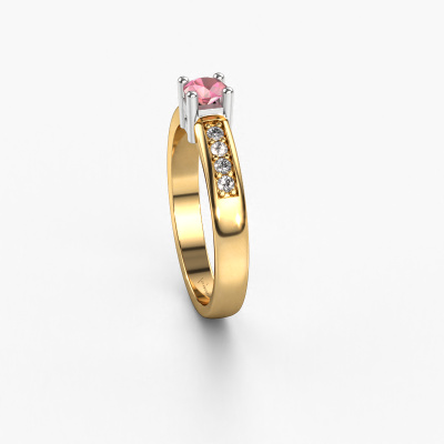 Der oben gezeigte Gold Verlobungsring wird Eline 2 genannt. Es ist ein Pavé Solitär Ring, da er einen zentralen Edelstein und ein Band mit Pavé-Fassung hat. Der moderne Pavé Solitär Verlobungsring ist in der Kombination 14 Karat Gold mit Weißgold und ist mit einem rund 3.7 mm Turmalin rosa-Mittelstein besetzt und das Band hat eine Pavé-Fassung mit Diamanten. Jedes Schmuckstück ist einzigartig in jeder Hinsicht! Einfach nach Ihren Wünschen anzupassen. Um den zentralen Stein noch mehr zu betonen, hat das Band eine Pavé-Fassung mit weiteren Turmalin rosa. Durch die offenen Krappen kann das Licht aus mehreren Winkeln auf den Turmalin rosa treffen und der Turmalin rosa-Ring funkelt noch mehr. Das obere Foto zeigt die leidenschaftlich handgefertigten Details des Rings. Die hohe Positionierung der Mittelstein ist ein echter Blickfang. Der perfekte Verlobungsring für das Kronjuwel Ihres Lebens!Da wir unsere eigenen Ringe entwerfen und liefern, können wir Ihnen einen Verlobungsring zu einem Preis anbieten, den Sie nirgendwo anders finden. Ein Ring wird auf Bestellung angefertigt, wodurch kein überschüssiges Material anfällt. So können wir Ihnen ein gutes Angebot zum besten Preis machen. Wir verstehen, dass es sich riskant anfühlt, Ihren Verlobungsring online zu kaufen. Jedoch helfen wir Ihnen gerne beim Designprozess unter Berücksichtigung Ihres Budgets.Unser Team fügt unserer Online-Kollektion täglich neue Designs hinzu. Unsere Designer und Goldschmiede arbeiten zusammen, um das beste Design zu kreieren. Wir bemühen uns, eine vielfältige Kollektion von Schmuckstücken anzubieten. Vielleicht haben Sie ein bestimmtes Design im Sinn. Eines, dass Sie irgendwo gesehen haben. Gerne geben wir Ihnen eine kostenlose Beratung. Wir machen Ihnen ein Angebot, basierend auf einem fairen Preis/Leistungsverhältnis, das Sie verblüffen wird.Um es einfacher zu machen, bieten wir eine kostenlose 30-tägige Rücksendung.