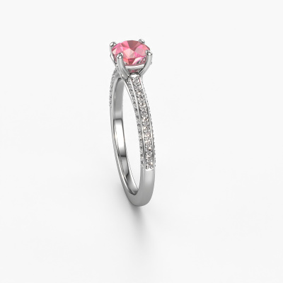 Der oben gezeigte Ring wird Elenore rnd genannt. Es ist ein Pavé Solitär Ring, da er einen zentralen Edelstein und ein Band mit Pavé-Fassung hat. Dieser Platin ring ist mit einem 5.4 mm rund Turmalin rosa-Mittelstein besetzt und das Band hat eine Pavé-Fassung mit Lab grown Diamant. Jedes Schmuckstück wird von unseren Meister-Goldschmieden in unserem eigenen Studio für Sie gefertigt.Dieser exklusive Platin Pavé Solitär Verlobungsring mit Pavé-Fassung hat einen exquisiten, rund Turmalin rosa als Mittelstein. Um den zentralen Stein noch mehr zu betonen, hat das Band eine Pavé-Fassung mit weiteren Lab grown Diamant. Durch die offenen Krappen kann das Licht aus mehreren Winkeln auf den Turmalin rosa treffen und der Turmalin rosa-Ring funkelt noch mehr. Das obere Foto zeigt die leidenschaftlich handgefertigten Details des Rings. Die hohe Positionierung der Mittelstein ist ein echter Blickfang. Der perfekte Verlobungsring für das Kronjuwel Ihres Lebens!Durch die Kombination modernster Technik mit uralter Handwerkskunst können wir alle Verlobungsringe in unserem eigenen Studio anfertigen. Jedes Schmuckstück wird auf Anfrage gefertigt. Das ist vorteilhaft, weil wir Ihnen dadurch einen Preis anbieten können, den Sie nirgendwo anders finden.Haben Sie irgendwo einen bestimmten Verlobungsring gefunden, den Sie Ihrem Liebsten schenken möchten? Sie können uns gerne sagen, was Sie wollen und wir werden Ihr Design in einen Einzigartigen exklusive Verlobungsring verwandeln. Sie können die Entwicklungen Ihres Ringdesigns verfolgen, da wir 3D-Zeichnungen verwenden. Das gibt Ihnen eine realistische Vorschau, wie Ihr Design aussehen wird. Sie können auch einen Dummy vorbestellen. Ein Dummy ist ein Kunststoffring, der nach Ihrem Ringdesign gestaltet werden kann. Sie können ihn anprobieren und prüfen, ob seine Breite und Größe für Sie geeignet sind. Wir senden Ihnen gerne ein unverbindliches Angebot zu einem fairen Preis/Leistungsverhältnis. Sie werden in Anbetracht der Qualität des Rings und der Edelsteine überrascht sein.Um es einfacher zu machen, bieten wir eine kostenlose 30-tägige Rücksendung.