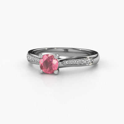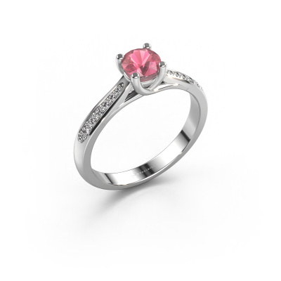 Der oben gezeigte Ring wird Mia 2 genannt. Es ist ein Pavé Solitär Ring, da er einen zentralen Edelstein und ein Band mit Pavé-Fassung hat. Dieser Platin ring ist mit einem 5 mm rund Turmalin rosa-Mittelstein besetzt und das Band hat eine Pavé-Fassung mit Lab grown Diamant. Jedes Schmuckstück wird nur für Sie persönlich hergestellt, mit Liebe zum Detail und Design.Dieser moderne Platin Pavé Solitär Verlobungsring mit Pavé-Fassung hat einen exquisiten, rund Turmalin rosa als Mittelstein. Um den zentralen Stein noch mehr zu betonen, hat das Band eine Pavé-Fassung mit weiteren Lab grown Diamant. Durch die offenen Krappen kann das Licht aus mehreren Winkeln auf den Turmalin rosa treffen und der Turmalin rosa-Ring funkelt noch mehr. Das obere Foto zeigt die leidenschaftlich handgefertigten Details des Rings. Die hohe Positionierung der Mittelstein ist ein echter Blickfang. Der perfekte Verlobungsring für das Kronjuwel Ihres Lebens!Mit unserer modernen Technik können wir Schmuckstücke von höchster Qualität mit größter Sorgfalt für Sie entwerfen und anpassen. Unsere Verlobungsringe sind immer um 30 Prozent günstiger als bei anderen Juwelieren. Wir fertigen Verlobungsringe auf Bestellung, also müssen wir keine großen Lager unterhalten. Wenn Sie ein bestimmtes Budget haben, beraten wir Sie gerne entsprechend.Verschiedene Arten von neuen Ringen werden täglich von unserem Team angefertigt. Vielleicht haben Sie irgendwo einen Pavé Solitär Verlobungsring gefunden. Einen, den Sie Ihrem Liebsten schenken möchten. Bitte zögern Sie nicht, unseren Schmuckdesignern Ihre Gedanken und Ihr Design zu zeigen. Wir würden gerne Ihr Design in einen moderne Verlobungsring verwandeln. Sie können die Entwicklungen Ihres Ringdesigns verfolgen, da wir sehr detaillierte 3D-Zeichnungen verwenden. Darüber hinaus können Sie einen Dummy des Designs bestellen. Ein Dummy ist ein Kunststoffring, der nach Ihrem Ringdesign gestaltet werden kann. Sie können ihn anprobieren und prüfen, ob der Verlobungsring Ihren Vorstellungen entspricht. Wir senden Ihnen gerne ein unverbindliches Angebot zu einem fairen Preis/Leistungsverhältnis. Das Angebot wird Sie angesichts der Qualität des Rings und der Edelsteine verblüffen.Um es einfacher zu machen, bieten wir eine kostenlose 30-tägige Rücksendung.