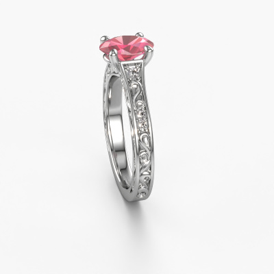 Der oben gezeigte Ring wird Mallory ovl genannt. Es ist ein Pavé Solitär Ring, da er einen zentralen Edelstein und ein Band mit Pavé-Fassung hat. Dieser Platin ring ist mit einem 8x6 mm oval Turmalin rosa-Mittelstein besetzt und das Band hat eine Pavé-Fassung mit Lab grown Diamant. Jedes Schmuckstück wird hergestellt mit Leidenschaft und Liebe, von einem unserer Meister-Goldschmiede.Dieser traditionell Platin Pavé Solitär Verlobungsring mit Pavé-Fassung hat einen exquisiten, oval Turmalin rosa als Mittelstein. Um den zentralen Stein noch mehr zu betonen, hat das Band eine Pavé-Fassung mit weiteren Lab grown Diamant. Durch die offenen Krappen kann das Licht aus mehreren Winkeln auf den Turmalin rosa treffen und der Turmalin rosa-Ring funkelt noch mehr. Das obere Foto zeigt die leidenschaftlich handgefertigten Details des Rings. Die hohe Positionierung der Mittelstein ist ein echter Blickfang. Der perfekte Verlobungsring für das Kronjuwel Ihres Lebens!Haben Sie ein bestimmtes Budget? Sie können uns gerne kontaktieren, damit wir Ihre Optionen besprechen können. Wir bieten unsere Verlobungsringe zum garantiert besten Preis, denn wir fertigen sie auf Bestellung. Solche Preise finden Sie nirgendwo anders!Unser Team fügt unserer Online-Kollektion täglich neue Designs hinzu. Unsere Designer und Goldschmiede arbeiten zusammen, um das beste Design zu kreieren. Wir bemühen uns, eine vielfältige Kollektion von Schmuckstücken anzubieten. Vielleicht haben Sie ein bestimmtes Design im Sinn. Eines, dass Sie irgendwo gesehen haben. Gerne geben wir Ihnen eine kostenlose Beratung. Wir machen Ihnen ein Angebot, basierend auf einem fairen Preis/Leistungsverhältnis, das Sie verblüffen wird.Um es einfacher zu machen, bieten wir eine kostenlose 30-tägige Rücksendung.
