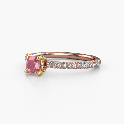 Der oben gezeigte Roségold Verlobungsring wird Saskia 2 cus genannt. Es ist ein Pavé Solitär Ring, da er einen zentralen Edelstein und ein Band mit Pavé-Fassung hat. Der moderne Pavé Solitär Verlobungsring ist in der Kombination 14 Karat Roségold mit Gold und ist mit einem cussion 4.5 mm Turmalin rosa-Mittelstein besetzt und das Band hat eine Pavé-Fassung mit Lab grown Diamant. Jedes Schmuckstück wird nur für Sie persönlich hergestellt, mit Liebe zum Detail und Design. Um den zentralen Stein noch mehr zu betonen, hat das Band eine Pavé-Fassung mit weiteren Turmalin rosa. Durch die offenen Krappen kann das Licht aus mehreren Winkeln auf den Turmalin rosa treffen und der Turmalin rosa-Ring funkelt noch mehr. Das obere Foto zeigt die leidenschaftlich handgefertigten Details des Rings. Die hohe Positionierung der Mittelstein ist ein echter Blickfang. Der perfekte Verlobungsring für das Kronjuwel Ihres Lebens!Haben Sie ein bestimmtes Budget? Sie können uns gerne kontaktieren, damit wir Ihre Optionen besprechen können. Wir bieten unsere Verlobungsringe zum garantiert besten Preis, denn wir fertigen sie auf Bestellung. Solche Preise finden Sie nirgendwo anders!Unsere Designer und Goldschmiede arbeiten jeden Tag zusammen und versuchen, neue Schmuckstücke zu kreieren. Vielleicht haben Sie irgendwo einen schönen, moderne Verlobungsring gefunden, nach dem Ihr einzigartiger Ring gestaltet werden kann. Setzen Sie sich mit uns in Verbindung. Wir machen Ihnen ein Angebot, basierend auf einem fairen Preis/Leistungsverhältnis, das Sie begeistern wird.Um es einfacher zu machen, bieten wir eine kostenlose 30-tägige Rücksendung.