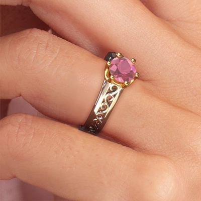 Der oben gezeigte Verlobungsring wird Shan genannt. Wir nennen das einen Solitär-Ring, denn er hat einen einzelnen Edelstein. Es ist ein 14 Karat Weißgold ring, mit 6 mm rund Turmalin rosa. Das Besondere an unserem Konfigurator ist dass Sie selbst einem Schmuckstück zusammenstellen können zu einem eigenen persönlichen Schmuckstück. Dieser Solitäre Verlobungsring ist gefertigt in der Edelmetall Kombination Weißgold mit Gold, aber Sie können also auch wählen aus anderen Farben. Jedes Schmuckstück wird hergestellt von einem Team leidenschaftlicher Goldschmiede und Schmuckdesigner. Das wird Ihr Kronjuwel unbedingt zu einem Blickfang machen. Der Solitär-Verlobungsring ist eine Sonderform des Verlobungsring. Seine offenen Krappen ermöglichen, dass Licht aus mehr Winkeln auf den Edelstein trifft. Dieser Keltische Verlobungsring ist durch die hohe Positionierung des Edelsteins ein atemberaubender Blickfang. Wir schmücken diesen Solitär-Ring sorgfältig von Hand, damit Sie Ihren Anfrage mit einem einzigartigen Ring würdigen können. Die Liebe Ihres Lebens verdient nur das Beste. Mit unserer modernen Technik können wir Schmuckstücke von höchster Qualität mit größter Sorgfalt für Sie entwerfen und anpassen. Unsere Verlobungsringe sind immer um 30 Prozent günstiger als bei anderen Juwelieren. Wir fertigen Verlobungsringe auf Bestellung, also müssen wir keine großen Lager unterhalten. Wenn Sie ein bestimmtes Budget haben, beraten wir Sie gerne entsprechend.Haben Sie irgendwo einen bestimmten Verlobungsring gefunden, den Sie Ihrem Liebsten schenken möchten? Sie können uns gerne sagen, was Sie wollen und wir werden Ihr Design in einen Einzigartigen Keltische Verlobungsring verwandeln. Sie können die Entwicklungen Ihres Ringdesigns verfolgen, da wir 3D-Zeichnungen verwenden. Das gibt Ihnen eine realistische Vorschau, wie Ihr Design aussehen wird. Sie können auch einen Dummy vorbestellen. Ein Dummy ist ein Kunststoffring, der nach Ihrem Ringdesign gestaltet werden kann. Sie können ihn anprobieren und prüfen, ob seine Breite und Größe für Sie geeignet sind. Wir senden Ihnen gerne ein unverbindliches Angebot zu einem fairen Preis/Leistungsverhältnis. Sie werden in Anbetracht der Qualität des Rings und der Edelsteine überrascht sein.Um es einfacher zu machen, bieten wir eine kostenlose 30-tägige Rücksendung.