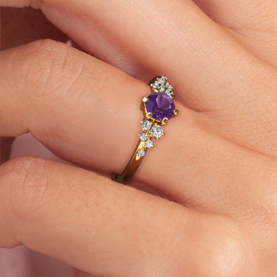 Der oben gezeigte Verlobungsring wird Royce RND genannt. Wir nennen das einen Solitär-Ring, denn er hat einen einzelnen Edelstein. Es ist ein 14 Karat Gold Verlobungsring, mit 5 mm rund Amethyst. Dieser außergewöhnliche, Vintage Gold Solitär-Verlobungsring mit einem schönen, rund Amethyst soll Ihrem Antrag ein Funkeln geben. Die offenen Krappen ermöglichen, dass Licht aus mehr Winkeln auf den Edelstein trifft. Wussten Sie, dass ein Amethyst für ewige Liebe und Treue steht? Das macht ihn zum perfekten Mittelstück. Unsere Goldschmiede positioniert den Edelstein Ihrer Wahl sorgfältig oben auf dem Ring. Dadurch sticht er hervor. Jedes Schmuckstück wird hergestellt von einem Team leidenschaftlicher Goldschmiede und Schmuckdesigner. Das wird Ihr Kronjuwel unbedingt zu einem Blickfang machen.Nach Erhalt Ihrer Bestellung beginnen unsere Goldschmiede mit Leidenschaft den kreativen Prozess und fertigen Ihren Verlobungsring in unserem eigenen Studio. Da wir keine großen Lager haben, werden diese Kosten nicht an Sie weitergegeben. Unsere Preisgestaltung ist der Beweis dafür! Wir bieten Schmuck zum niedrigsten Preis, garantiert.Haben Sie einen bestimmten Ring im Sinn? Eines, dass Sie irgendwo gesehen haben. Bitte zögern Sie nicht, uns zu sagen, was Sie wollen und wir werden Ihr Design in einen Einzigartigen Verlobungsring verwandeln. Sie können die Entwicklungen Ihres Ringdesigns verfolgen, da wir 3D-Zeichnungen verwenden. Das gibt Ihnen eine realistische Vorschau Ihres Designs. Wir senden Ihnen gerne ein unverbindliches Angebot zu einem fairen Preis/Leistungsverhältnis. Es wird Sie erstaunen.Um es einfacher zu machen, bieten wir eine kostenlose 30-tägige Rücksendung.