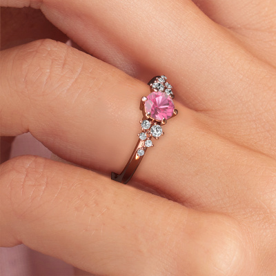 Der oben gezeigte Verlobungsring wird Royce RND genannt. Wir nennen das einen Solitär-Ring, denn er hat einen einzelnen Edelstein. Es ist ein 14 Karat Roségold Verlobungsring, mit 5 mm rund Pink Saphir. Dieser außergewöhnliche, Vintage Roségold Solitär-Verlobungsring mit einem schönen, rund Pink Saphir soll Ihrem Antrag ein Funkeln geben. Die offenen Krappen ermöglichen, dass Licht aus mehr Winkeln auf den Edelstein trifft. Wussten Sie, dass ein Pink Saphir für ewige Liebe und Treue steht? Das macht ihn zum perfekten Mittelstück. Unsere Goldschmiede positioniert den Edelstein Ihrer Wahl sorgfältig oben auf dem Ring. Dadurch sticht er hervor. Jedes Schmuckstück wird hergestellt von einem Team leidenschaftlicher Goldschmiede und Schmuckdesigner. Das wird Ihr Kronjuwel unbedingt zu einem Blickfang machen.Nach Erhalt Ihrer Bestellung beginnen unsere Goldschmiede mit Leidenschaft den kreativen Prozess und fertigen Ihren Verlobungsring in unserem eigenen Studio. Da wir keine großen Lager haben, werden diese Kosten nicht an Sie weitergegeben. Unsere Preisgestaltung ist der Beweis dafür! Wir bieten Schmuck zum niedrigsten Preis, garantiert.Haben Sie einen bestimmten Ring im Sinn? Eines, dass Sie irgendwo gesehen haben. Bitte zögern Sie nicht, uns zu sagen, was Sie wollen und wir werden Ihr Design in einen Einzigartigen Verlobungsring verwandeln. Sie können die Entwicklungen Ihres Ringdesigns verfolgen, da wir 3D-Zeichnungen verwenden. Das gibt Ihnen eine realistische Vorschau Ihres Designs. Wir senden Ihnen gerne ein unverbindliches Angebot zu einem fairen Preis/Leistungsverhältnis. Es wird Sie erstaunen.Um es einfacher zu machen, bieten wir eine kostenlose 30-tägige Rücksendung.