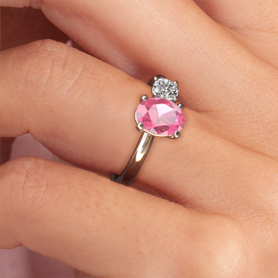 Dieser Verlobungsring aus 14 Karat Weißgold heißt Toi et Moi OVL-RND. Suchen Sie nach einem einzigartigen Weißgold Verlobungsring mit einem trendigen Aussehen? Dann ist dieser Ring mit Pink Saphir das Richtige für Sie. Einfach nach Ihren Wünschen anpassen. Dieser schicke Verlobungsring ist mit exquisiten Pink Saphir besetzt. Er wurde sorgfältig ausgewählt, weil Ihr zierliche Verlobungsring nur mit dem schönsten Edelstein gekrönt werden darf. Unser erfahrener Juwelier kreiert Ihren Ring in unserem eigenen Studio, wo der Pink Saphir mit großer Sorgfalt eingefasst wird. Der Ring wird dann bearbeitet und poliert, um ihm einen zusätzlichen Glanz zu verleihen. Der perfekte Ring für Ihre bessere Hälfte!Haben Sie ein bestimmtes Budget? Sie können uns gerne kontaktieren, damit wir Ihre Optionen besprechen können. Wir bieten unsere Verlobungsringe zum garantiert besten Preis, denn wir fertigen sie auf Bestellung. Solche Preise finden Sie nirgendwo anders!Haben Sie irgendwo einen bestimmten Verlobungsring gefunden, den Sie Ihrem Liebsten schenken möchten? Sie können uns gerne sagen, was Sie wollen und wir werden Ihr Design in einen Einzigartigen schicke Verlobungsring verwandeln. Sie können die Entwicklungen Ihres Ringdesigns verfolgen, da wir 3D-Zeichnungen verwenden. Das gibt Ihnen eine realistische Vorschau, wie Ihr Design aussehen wird. Sie können auch einen Dummy vorbestellen. Ein Dummy ist ein Kunststoffring, der nach Ihrem Ringdesign gestaltet werden kann. Sie können ihn anprobieren und prüfen, ob seine Breite und Größe für Sie geeignet sind. Wir senden Ihnen gerne ein unverbindliches Angebot zu einem fairen Preis/Leistungsverhältnis. Sie werden in Anbetracht der Qualität des Rings und der Edelsteine überrascht sein.Um es einfacher zu machen, bieten wir eine kostenlose 30-tägige Rücksendung.