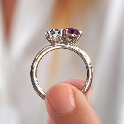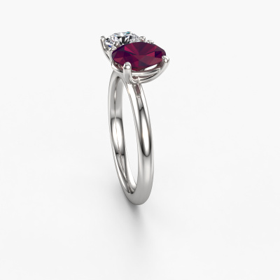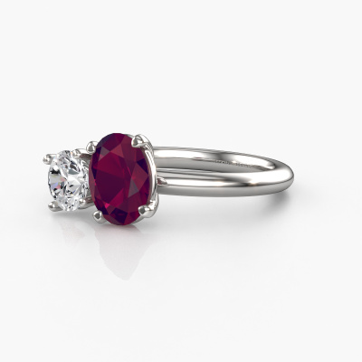 Dieser Verlobungsring aus 14 Karat Weißgold heißt Toi et Moi OVL-RND. Suchen Sie nach einem einzigartigen Weißgold Verlobungsring mit einem trendigen Aussehen? Dann ist dieser Ring mit Rhodolit das Richtige für Sie. Einfach nach Ihren Wünschen