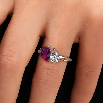 Dieser Verlobungsring aus 14 Karat Weißgold heißt Toi et Moi PER-PER. Suchen Sie nach einem einzigartigen Weißgold Verlobungsring mit einem trendigen Aussehen? Dann ist dieser Ring mit Rhodolit das Richtige für Sie. Einfach nach Ihren Wünschen anpassen. Dieser modische Verlobungsring ist mit exquisiten Rhodolit besetzt. Er wurde sorgfältig ausgewählt, weil Ihr modische Verlobungsring nur mit dem schönsten Edelstein gekrönt werden darf. Unser erfahrener Juwelier kreiert Ihren Ring in unserem eigenen Studio, wo der Rhodolit mit großer Sorgfalt eingefasst wird. Der Ring wird dann bearbeitet und poliert, um ihm einen zusätzlichen Glanz zu verleihen. Der perfekte Ring für Ihre bessere Hälfte!Nach Erhalt Ihrer Bestellung beginnen unsere Goldschmiede mit Leidenschaft den kreativen Prozess und fertigen Ihren Verlobungsring in unserem eigenen Studio. Da wir keine großen Lager haben, werden diese Kosten nicht an Sie weitergegeben. Unsere Preisgestaltung ist der Beweis dafür! Wir bieten Schmuck zum niedrigsten Preis, garantiert.Unsere Designer und Goldschmiede arbeiten jeden Tag zusammen und versuchen, neue Schmuckstücke zu kreieren. Vielleicht haben Sie irgendwo einen schönen, modische Verlobungsring gefunden, nach dem Ihr einzigartiger Ring gestaltet werden kann. Setzen Sie sich mit uns in Verbindung. Wir machen Ihnen ein Angebot, basierend auf einem fairen Preis/Leistungsverhältnis, das Sie begeistern wird.Um es einfacher zu machen, bieten wir eine kostenlose 30-tägige Rücksendung.