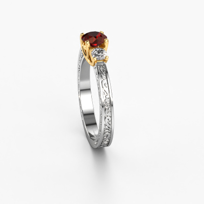 Dieser Verlobungsring aus 14 Karat Weißgold heißt Betty 1 und hat einen Granat Edelstein. Ein außergewöhnlicher, Weißgold Vintage Ring. Einer, der die Liebe Ihres Lebens mit Sicherheit wie ein Granat erstrahlen lässt! Das hoffen wir zu erreichen. Dieser Keltische Verlobungsring ist mit exquisiten Granat besetzt. Welchen Edelstein Sie aus unserer Auswahl haben möchten, liegt ganz bei Ihnen. Der Edelstein wird mit großer Sorgfalt ausgewählt. Denn wir glauben, dass Ihr Verlobungsring nur mit dem schönsten Edelstein gekrönt sein darf. Sehen Sie das auch so? Unser erfahrener Juwelier entwirft Ihren Ring in unserem eigenen Studio, wo der Granat mit großer Präzision eingefasst wird. Der Ring wird dann bearbeitet und poliert, bis er perfekt ist. Nichts als das Beste für die Liebe Ihres Lebens! Jedes Schmuckstück ist um Ihrem Finger Glanz zu verleihen. Jeder Ring wird von unseren Goldschmieden liebevoll von Hand gefertigt.Haben Sie ein bestimmtes Budget? Sie können uns gerne kontaktieren, damit wir Ihre Optionen besprechen können. Wir bieten unsere Verlobungsringe zum garantiert besten Preis, denn wir fertigen sie auf Bestellung. Solche Preise finden Sie nirgendwo anders!Unser Team fügt unserer Online-Kollektion täglich neue Designs hinzu. Unsere Designer und Goldschmiede arbeiten zusammen, um das beste Design zu kreieren. Wir bemühen uns, eine vielfältige Kollektion von Schmuckstücken anzubieten. Vielleicht haben Sie ein bestimmtes Design im Sinn. Eines, dass Sie irgendwo gesehen haben. Gerne geben wir Ihnen eine kostenlose Beratung. Wir machen Ihnen ein Angebot, basierend auf einem fairen Preis/Leistungsverhältnis, das Sie verblüffen wird.Um es einfacher zu machen, bieten wir eine kostenlose 30-tägige Rücksendung.