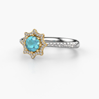 Dieser Verlobungsring aus 14 Karat Weißgold heißt Zena und hat einen Blau Topas Edelstein. Ein außergewöhnlicher, Weißgold Vintage Ring. Einer, der die Liebe Ihres Lebens mit Sicherheit wie ein Blau Topas erstrahlen lässt! Das hoffen wir zu