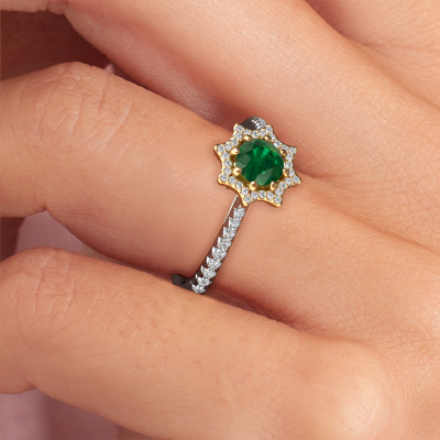 Dieser Verlobungsring aus 14 Karat Weißgold heißt Zena und hat einen Smaragd Edelstein. Ein außergewöhnlicher, Weißgold Vintage Ring. Einer, der die Liebe Ihres Lebens mit Sicherheit wie ein Smaragd erstrahlen lässt! Das hoffen wir zu