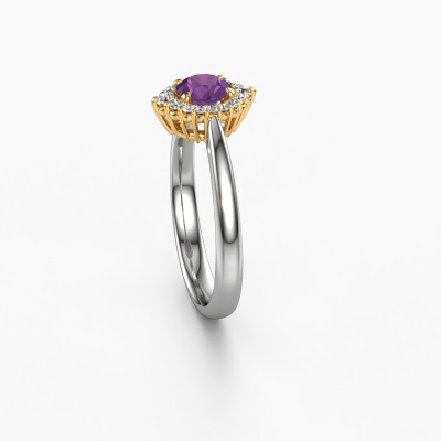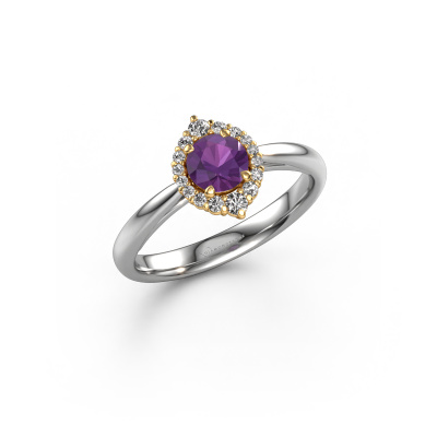 Der oben gezeigte Ring wird Tora genannt. Ein Cluster Ring mit einem zentralen Edelstein, umgeben von kleineren Steinen, wir nennen das einen Cluster Ring. Diese Version in 14 Karat Weißgold hat einen 5 mm rund Amethyst als Mittelstein, umschlossen von kleineren Lab grown Diamant. Der klassische, Weißgold Cluster Verlobungsring zeichnet sich durch seine Form aus. Zusammen bilden die kleineren und größeren Amethyst eine Blume und scheinen zu einem großen, funkelnden Edelstein zu verschmelzen. Dieser klassische Verlobungsring wird auch als Blumen- oder Rosettenring bezeichnet. Unsere erfahrenen Juweliere stellen sicher, dass die kleineren Lab grown Diamant identisch gesetzt sind, so dass es an dem Amethyst keine Lichtstörungen gibt, sondern sie stattdessen eine Einheit bilden. Mit perfekter Präzision und geschickter Hand wird jeder Amethyst in den Ring gesetzt. Während der Herstellung wird alles ständig überwacht, um sicherzustellen, dass das Licht einwandfrei reflektiert wird. Das alles führt zu einem einzigartigen Verlobungsring mit einem strahlenden Amethysten in seiner Mitte. Ein schönes, bedeutungsvolles Geschenk, um es der Liebe Ihres Lebens zu schenken. Durch die Kombination modernster Technik mit uralter Handwerkskunst können wir alle Verlobungsringe in unserem eigenen Studio anfertigen. Jedes Schmuckstück wird auf Anfrage gefertigt. Das ist vorteilhaft, weil wir Ihnen dadurch einen Preis anbieten können, den Sie nirgendwo anders finden.Haben Sie irgendwo einen bestimmten Verlobungsring gefunden, den Sie Ihrem Liebsten schenken möchten? Sie können uns gerne sagen, was Sie wollen und wir werden Ihr Design in einen Einzigartigen klassische Verlobungsring verwandeln. Sie können die Entwicklungen Ihres Ringdesigns verfolgen, da wir 3D-Zeichnungen verwenden. Das gibt Ihnen eine realistische Vorschau, wie Ihr Design aussehen wird. Sie können auch einen Dummy vorbestellen. Ein Dummy ist ein Kunststoffring, der nach Ihrem Ringdesign gestaltet werden kann. Sie können ihn anprobieren und prüfen, ob seine Breite und Größe für Sie geeignet sind. Wir senden Ihnen gerne ein unverbindliches Angebot zu einem fairen Preis/Leistungsverhältnis. Sie werden in Anbetracht der Qualität des Rings und der Edelsteine überrascht sein.Um es einfacher zu machen, bieten wir eine kostenlose 30-tägige Rücksendung.