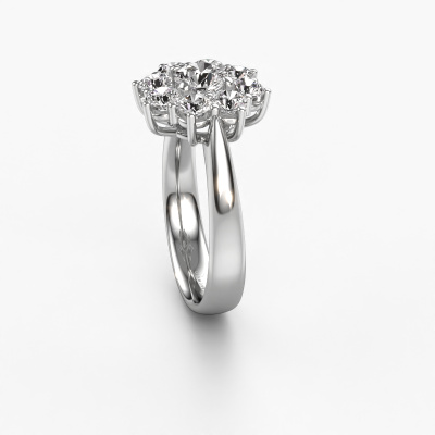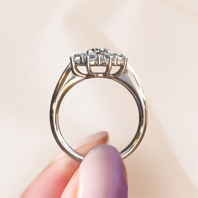 Der oben gezeigte Ring wird Carolyn 1 genannt. Ein Flower Ring mit einem zentralen Edelstein, umgeben von kleineren Steinen, wir nennen das einen Cluster Ring. Diese Version in 14 Karat Weißgold hat einen 0.50 crt rund Diamant als Mittelstein, umschlossen von kleineren Diamanten. Der traditionell, Weißgold Flower Verlobungsring zeichnet sich durch seine Form aus. Zusammen bilden die kleineren und größeren Diamant eine Blume und scheinen zu einem großen, funkelnden Edelstein zu verschmelzen. Dieser traditionell Verlobungsring wird auch als Blumen- oder Rosettenring bezeichnet. Unsere erfahrenen Juweliere stellen sicher, dass die kleineren Diamanten identisch gesetzt sind, so dass es an dem Diamant keine Lichtstörungen gibt, sondern sie stattdessen eine Einheit bilden. Mit perfekter Präzision und geschickter Hand wird jeder Diamant in den Ring gesetzt. Während der Herstellung wird alles ständig überwacht, um sicherzustellen, dass das Licht einwandfrei reflektiert wird. Das alles führt zu einem einzigartigen Verlobungsring mit einem strahlenden Diamanten in seiner Mitte. Ein schönes, bedeutungsvolles Geschenk, um es der Liebe Ihres Lebens zu schenken. Mit unserer modernen Technik können wir Schmuckstücke von höchster Qualität mit größter Sorgfalt für Sie entwerfen und anpassen. Unsere Verlobungsringe sind immer um 30 Prozent günstiger als bei anderen Juwelieren. Wir fertigen Verlobungsringe auf Bestellung, also müssen wir keine großen Lager unterhalten. Wenn Sie ein bestimmtes Budget haben, beraten wir Sie gerne entsprechend.Haben Sie einen bestimmten Ring im Sinn? Eines, dass Sie irgendwo gesehen haben. Bitte zögern Sie nicht, uns zu sagen, was Sie wollen und wir werden Ihr Design in einen Einzigartigen Verlobungsring verwandeln. Sie können die Entwicklungen Ihres Ringdesigns verfolgen, da wir 3D-Zeichnungen verwenden. Das gibt Ihnen eine realistische Vorschau Ihres Designs. Wir senden Ihnen gerne ein unverbindliches Angebot zu einem fairen Preis/Leistungsverhältnis. Es wird Sie erstaunen.Um es einfacher zu machen, bieten wir eine kostenlose 30-tägige Rücksendung.