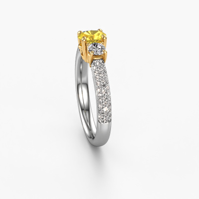 Dieser Verlobungsring aus 14 Karat Weißgold mit 6.5x4.5 mm Gelb Saphir heißt Marielle OVL. Liebt deine Freundin exklusiven Schmuck? Oder möchten Sie ihr zeigen, dass sie den besten Schmuck verdient? Dieser Weißgold Ring ist pure Handwerkskunst - Liebe und Leidenschaft kombiniert mit den neuesten Techniken, die in perfekter Harmonie zusammentreffen. Es erfordert ein scharfes Auge, Geduld und eine geschickte Hand, um diesen Ring in Perfektion zu formen. Genau der richtige Job für unsere erfahrenen Juweliere! Die Gelb Saphir-Fassung verleiht diesem Weißgold Pavé Ring eine extra glänzende Erscheinung. Passen Sie den Stil des Rings nach Ihren Wünschen und mit einer großen Auswahl an Edelmetallen und Edelsteinen an, die Sie selbst auswählen können. So kreieren Sie einen einzigartigen Ring für die exklusivste Frau Ihres Lebens! Jedes Schmuckstück wird von unseren Meister-Goldschmieden in unserem eigenen Studio für Sie gefertigt.Haben Sie ein bestimmtes Budget? Sie können uns gerne kontaktieren, damit wir Ihre Optionen besprechen können. Wir bieten unsere Verlobungsringe zum garantiert besten Preis, denn wir fertigen sie auf Bestellung. Solche Preise finden Sie nirgendwo anders!Haben Sie irgendwo einen bestimmten Verlobungsring gefunden, den Sie Ihrem Liebsten schenken möchten? Sie können uns gerne sagen, was Sie wollen und wir werden Ihr Design in einen Einzigartigen exklusive Verlobungsring verwandeln. Sie können die Entwicklungen Ihres Ringdesigns verfolgen, da wir 3D-Zeichnungen verwenden. Das gibt Ihnen eine realistische Vorschau, wie Ihr Design aussehen wird. Sie können auch einen Dummy vorbestellen. Ein Dummy ist ein Kunststoffring, der nach Ihrem Ringdesign gestaltet werden kann. Sie können ihn anprobieren und prüfen, ob seine Breite und Größe für Sie geeignet sind. Wir senden Ihnen gerne ein unverbindliches Angebot zu einem fairen Preis/Leistungsverhältnis. Sie werden in Anbetracht der Qualität des Rings und der Edelsteine überrascht sein.Um es einfacher zu machen, bieten wir eine kostenlose 30-tägige Rücksendung.