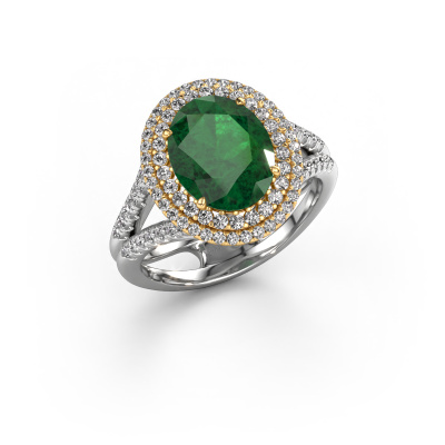 Der oben gezeigte Verlobungsring wird Elvie genannt. Es ist ein Halo Ring, da er einen zentralen Edelstein und ein Band mit Pavé-Fassung hat. Der 14 Karat Weißgold ring ist mit einem 10x8 mm oval Smaragd-Mittelstein besetzt und um ihn herum eine Pavé-Fassung mit Lab grown Diamant. Was diesen Vintage, Weißgold Pavé Solitär Ring besonders macht, sind die kleineren Steine, die den zentralen Stein umschließen. Dieser wunderschöne Verlobungsring wird als Pavé Solitär Ring bezeichnet, da die kleineren Edelsteine dem zentralen Stein einen Lichthof geben. Damit die kleineren Steine den Mittelstein verstärken, müssen sie so platziert werden, dass keine Lichteinflüsse auftreten. Und hier kommen unsere erfahrenen Goldschmiede ins Spiel. Jeder einzelne Stein wird sorgfältig von Hand in den Ring gesetzt. Während der Herstellung wird der Lichteinfall ständig überprüft. So können wir sicherstellen, dass der spezielle Lichtkranz noch sichtbar ist. Am Ende erhalten Sie einen einzigartigen Verlobungsring mit einem Smaragd Ihrer Wahl in der Mitte. Sie können sich die Wirkung eines solchen Ringes vorstellen, wenn Sie ihn an ihrem besonderen Tag für sie zum Leuchten bringen. Mit unserer modernen Technik können wir Schmuckstücke von höchster Qualität mit größter Sorgfalt für Sie entwerfen und anpassen. Unsere Verlobungsringe sind immer um 30 Prozent günstiger als bei anderen Juwelieren. Wir fertigen Verlobungsringe auf Bestellung, also müssen wir keine großen Lager unterhalten. Wenn Sie ein bestimmtes Budget haben, beraten wir Sie gerne entsprechend.Haben Sie einen bestimmten Ring im Sinn? Eines, dass Sie irgendwo gesehen haben. Bitte zögern Sie nicht, uns zu sagen, was Sie wollen und wir werden Ihr Design in einen Einzigartigen Verlobungsring verwandeln. Sie können die Entwicklungen Ihres Ringdesigns verfolgen, da wir 3D-Zeichnungen verwenden. Das gibt Ihnen eine realistische Vorschau Ihres Designs. Wir senden Ihnen gerne ein unverbindliches Angebot zu einem fairen Preis/Leistungsverhältnis. Es wird Sie erstaunen.Um es einfacher zu machen, bieten wir eine kostenlose 30-tägige Rücksendung.