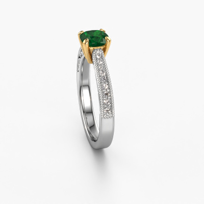 Dieser Verlobungsring aus 14 Karat Weißgold heißt Shonta CUS. Dieser filigrane Weißgold Verlobungsring mit 5.5 mm Smaragd ist ein wahres Kunstwerk! Ein wunderschön geschmücktes Design aus komplizierten Drähten. Mit Hingabe, Geduld und äußerster Präzision werden unsere erfahrenen Juweliere einen Ring nur für Sie entwerfen. Die Verzierungen mit kleinen Drähten werden von Hand in Perfektion gefertigt. Das ist ein langwieriger Prozess, der Schweißen, Werkzeug und Polieren umfasst, bis der erfahrene Juwelier mit dem Ergebnis zufrieden ist: Ein perfekter, auffälliger Ring, der ihn mit Freude zum Strahlen bringt. Deshalb ist der Vintage, filigrane Verlobungsring ein außergewöhnliches Geschenk, um die Liebe Ihres Lebens zu verwöhnen. Ein handgemachter, einzigartiger und personalisierter Ring, den man jemandem in diesem besonderen Moment geben kann, wenn man die eine Frage stellt. Ist das nicht wunderbar? Jedes Schmuckstück ist um Ihrem Finger Glanz zu verleihen. Jeder Ring wird von unseren Goldschmieden liebevoll von Hand gefertigt.Nachdem Sie Ihre Bestellung aufgegeben haben, beginnen unsere Goldschmiede mit dem kreativen Prozess der Herstellung Ihres Shonta CUS Verlobungsring. Wir haben keine Lager. Das ist vorteilhaft, da diese Kosten nicht an Sie weitergegeben werden. Daher sind wir in der Lage, Schmuck zu außergewöhnlich niedrigen Preisen anzubieten.Unsere Designer und Goldschmiede arbeiten jeden Tag zusammen und versuchen, neue Schmuckstücke zu kreieren. Vielleicht haben Sie irgendwo einen schönen, Vintage Verlobungsring gefunden, nach dem Ihr einzigartiger Ring gestaltet werden kann. Setzen Sie sich mit uns in Verbindung. Wir machen Ihnen ein Angebot, basierend auf einem fairen Preis/Leistungsverhältnis, das Sie begeistern wird.Um es einfacher zu machen, bieten wir eine kostenlose 30-tägige Rücksendung.