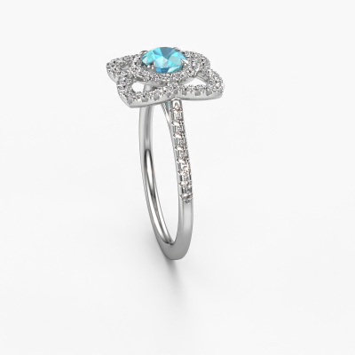 Dieser Verlobungsring aus 14 Karat Weißgold heißt Cleopatra und hat einen Blau Topas Edelstein. Ein außergewöhnlicher, Weißgold Vintage Ring. Einer, der die Liebe Ihres Lebens mit Sicherheit wie ein Blau Topas erstrahlen lässt! Das hoffen wir zu erreichen. Dieser Vintage Verlobungsring ist mit exquisiten Blaue Topas besetzt. Welchen Edelstein Sie aus unserer Auswahl haben möchten, liegt ganz bei Ihnen. Der Edelstein wird mit großer Sorgfalt ausgewählt. Denn wir glauben, dass Ihr Verlobungsring nur mit dem schönsten Edelstein gekrönt sein darf. Sehen Sie das auch so? Unser erfahrener Juwelier entwirft Ihren Ring in unserem eigenen Studio, wo der Blau Topas mit großer Präzision eingefasst wird. Der Ring wird dann bearbeitet und poliert, bis er perfekt ist. Nichts als das Beste für die Liebe Ihres Lebens! Jedes Schmuckstück wird nur für Sie persönlich hergestellt, mit Liebe zum Detail und Design.Nach Erhalt Ihrer Bestellung beginnen unsere Goldschmiede mit Leidenschaft den kreativen Prozess und fertigen Ihren Verlobungsring in unserem eigenen Studio. Da wir keine großen Lager haben, werden diese Kosten nicht an Sie weitergegeben. Unsere Preisgestaltung ist der Beweis dafür! Wir bieten Schmuck zum niedrigsten Preis, garantiert.Haben Sie irgendwo einen bestimmten Verlobungsring gefunden, den Sie Ihrem Liebsten schenken möchten? Sie können uns gerne sagen, was Sie wollen und wir werden Ihr Design in einen Einzigartigen Vintage Verlobungsring verwandeln. Sie können die Entwicklungen Ihres Ringdesigns verfolgen, da wir 3D-Zeichnungen verwenden. Das gibt Ihnen eine realistische Vorschau, wie Ihr Design aussehen wird. Sie können auch einen Dummy vorbestellen. Ein Dummy ist ein Kunststoffring, der nach Ihrem Ringdesign gestaltet werden kann. Sie können ihn anprobieren und prüfen, ob seine Breite und Größe für Sie geeignet sind. Wir senden Ihnen gerne ein unverbindliches Angebot zu einem fairen Preis/Leistungsverhältnis. Sie werden in Anbetracht der Qualität des Rings und der Edelsteine überrascht sein.Um es einfacher zu machen, bieten wir eine kostenlose 30-tägige Rücksendung.