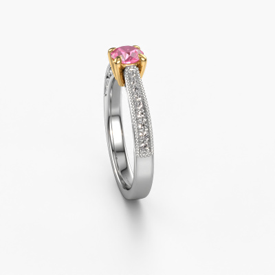 Dieser Verlobungsring aus 14 Karat Weißgold heißt Shonta RND. Dieser filigrane Weißgold Verlobungsring mit 4.7 mm Pink Saphir ist ein wahres Kunstwerk! Ein wunderschön geschmücktes Design aus komplizierten Drähten. Mit Hingabe, Geduld und äußerster Präzision werden unsere erfahrenen Juweliere einen Ring nur für Sie entwerfen. Die Verzierungen mit kleinen Drähten werden von Hand in Perfektion gefertigt. Das ist ein langwieriger Prozess, der Schweißen, Werkzeug und Polieren umfasst, bis der erfahrene Juwelier mit dem Ergebnis zufrieden ist: Ein perfekter, auffälliger Ring, der ihn mit Freude zum Strahlen bringt. Deshalb ist der Vintage, filigrane Verlobungsring ein außergewöhnliches Geschenk, um die Liebe Ihres Lebens zu verwöhnen. Ein handgemachter, einzigartiger und personalisierter Ring, den man jemandem in diesem besonderen Moment geben kann, wenn man die eine Frage stellt. Ist das nicht wunderbar? Jedes Schmuckstück wird von unseren Meister-Goldschmieden in unserem eigenen Studio für Sie gefertigt.Mit unserer modernen Technik können wir Schmuckstücke von höchster Qualität mit größter Sorgfalt für Sie entwerfen und anpassen. Unsere Verlobungsringe sind immer um 30 Prozent günstiger als bei anderen Juwelieren. Wir fertigen Verlobungsringe auf Bestellung, also müssen wir keine großen Lager unterhalten. Wenn Sie ein bestimmtes Budget haben, beraten wir Sie gerne entsprechend.Unser Team fügt unserer Online-Kollektion täglich neue Designs hinzu. Unsere Designer und Goldschmiede arbeiten zusammen, um das beste Design zu kreieren. Wir bemühen uns, eine vielfältige Kollektion von Schmuckstücken anzubieten. Vielleicht haben Sie ein bestimmtes Design im Sinn. Eines, dass Sie irgendwo gesehen haben. Gerne geben wir Ihnen eine kostenlose Beratung. Wir machen Ihnen ein Angebot, basierend auf einem fairen Preis/Leistungsverhältnis, das Sie verblüffen wird.Um es einfacher zu machen, bieten wir eine kostenlose 30-tägige Rücksendung.