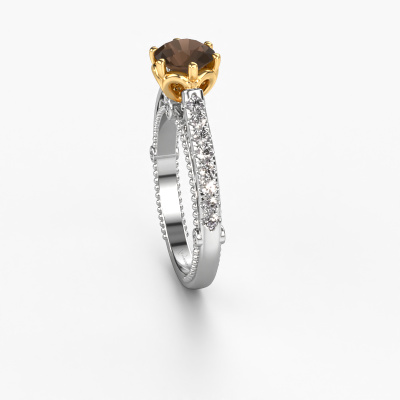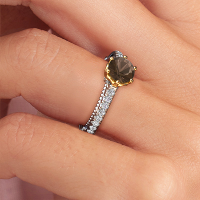 Dieser Verlobungsring aus 14 Karat Weißgold heißt Venita und hat einen Rauchquarz Edelstein. Ein außergewöhnlicher, Weißgold Vintage Ring. Einer, der die Liebe Ihres Lebens mit Sicherheit wie ein Rauchquarz erstrahlen lässt! Das hoffen wir zu erreichen. Dieser Vintage Verlobungsring ist mit exquisiten Rauchquarz besetzt. Welchen Edelstein Sie aus unserer Auswahl haben möchten, liegt ganz bei Ihnen. Der Edelstein wird mit großer Sorgfalt ausgewählt. Denn wir glauben, dass Ihr Verlobungsring nur mit dem schönsten Edelstein gekrönt sein darf. Sehen Sie das auch so? Unser erfahrener Juwelier entwirft Ihren Ring in unserem eigenen Studio, wo der Rauchquarz mit großer Präzision eingefasst wird. Der Ring wird dann bearbeitet und poliert, bis er perfekt ist. Nichts als das Beste für die Liebe Ihres Lebens! Jedes Schmuckstück wird von unseren Meister-Goldschmieden in unserem eigenen Studio für Sie gefertigt.Nach Erhalt Ihrer Bestellung beginnen unsere Goldschmiede mit Leidenschaft den kreativen Prozess und fertigen Ihren Verlobungsring in unserem eigenen Studio. Da wir keine großen Lager haben, werden diese Kosten nicht an Sie weitergegeben. Unsere Preisgestaltung ist der Beweis dafür! Wir bieten Schmuck zum niedrigsten Preis, garantiert.Unser Team fügt unserer Online-Kollektion täglich neue Designs hinzu. Unsere Designer und Goldschmiede arbeiten zusammen, um das beste Design zu kreieren. Wir bemühen uns, eine vielfältige Kollektion von Schmuckstücken anzubieten. Vielleicht haben Sie ein bestimmtes Design im Sinn. Eines, dass Sie irgendwo gesehen haben. Gerne geben wir Ihnen eine kostenlose Beratung. Wir machen Ihnen ein Angebot, basierend auf einem fairen Preis/Leistungsverhältnis, das Sie verblüffen wird.Um es einfacher zu machen, bieten wir eine kostenlose 30-tägige Rücksendung.